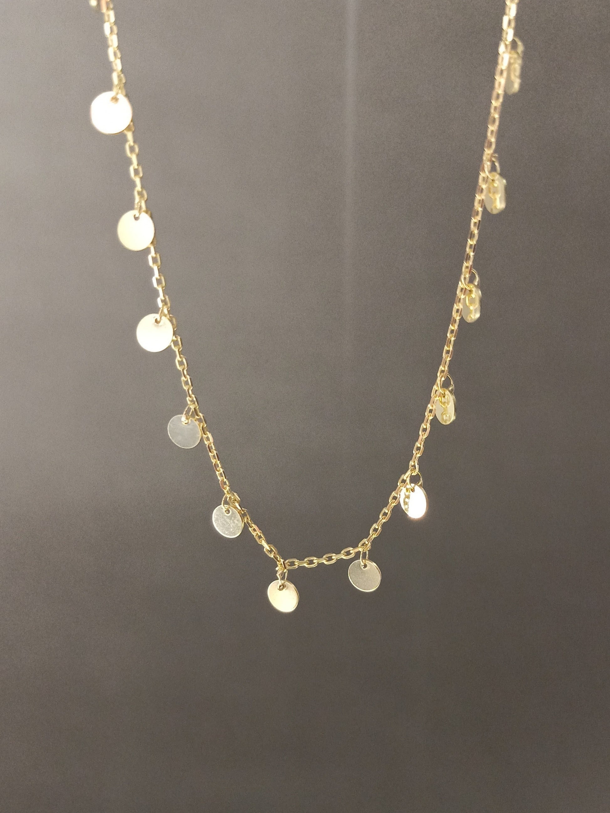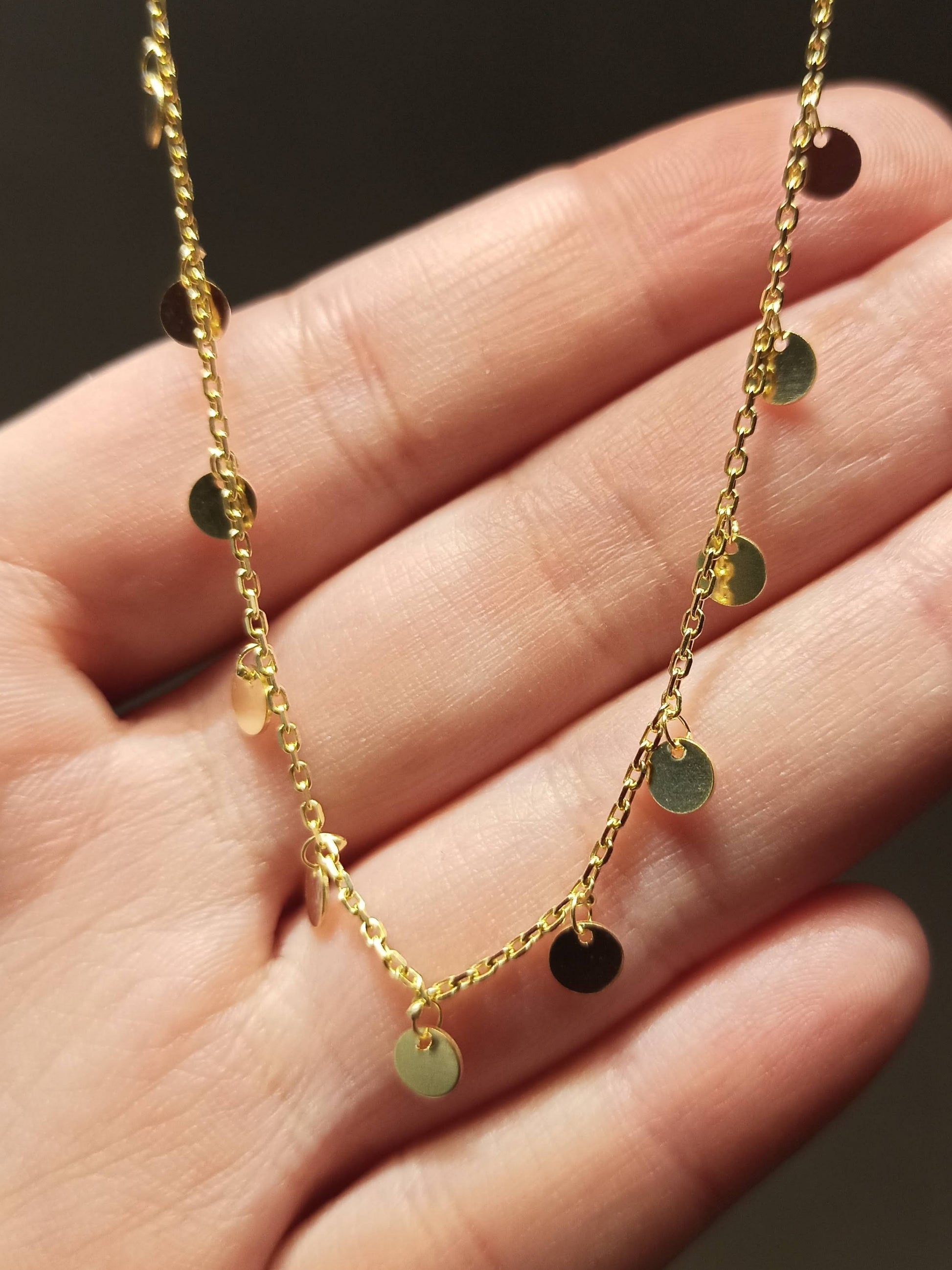 Gümüş Pullu Sallantılı Zincir Kolye - Altın Kaplamalı