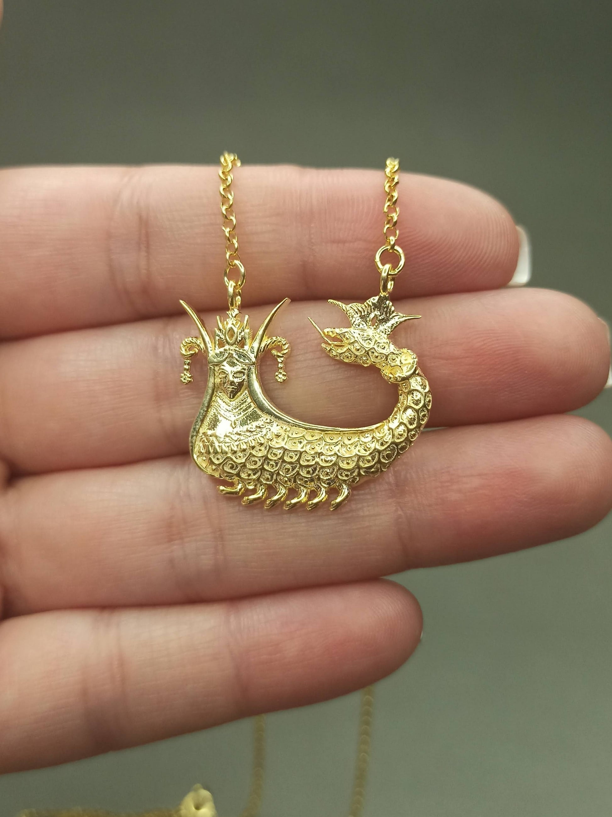 Antik Tasarım ve Kabartmalar: Antik motifler ve detaylı kabartmalar, takıyı sadece bir aksesuar değil, aynı zamanda kültürel bir hikaye ve enerji kaynağı haline getirir. Mitolojik kolye olarak Şahmeran, hem günlük kullanımda şık bir aksesuar hem de özel günlerde anlamlı bir hediye seçeneğidir.