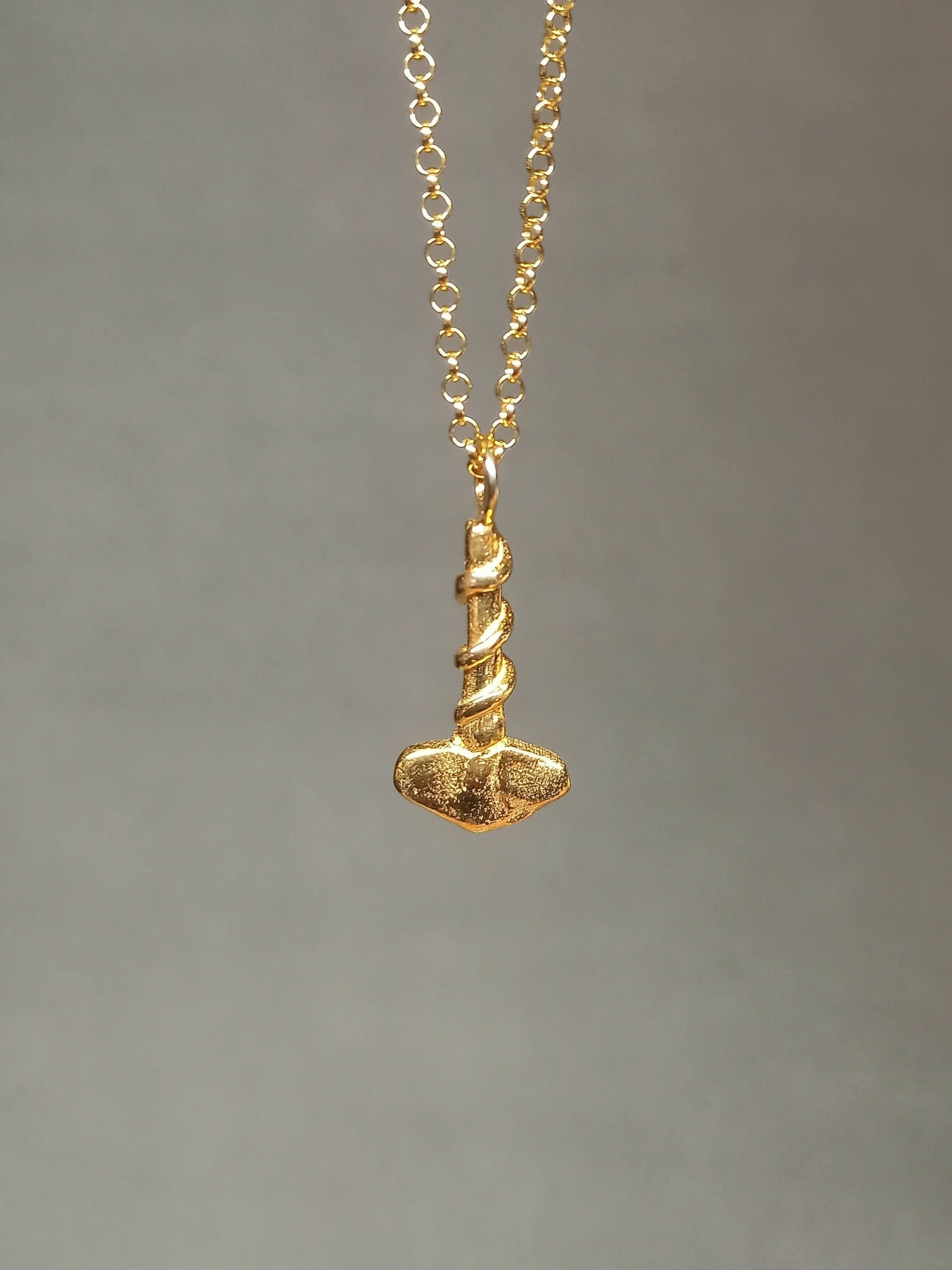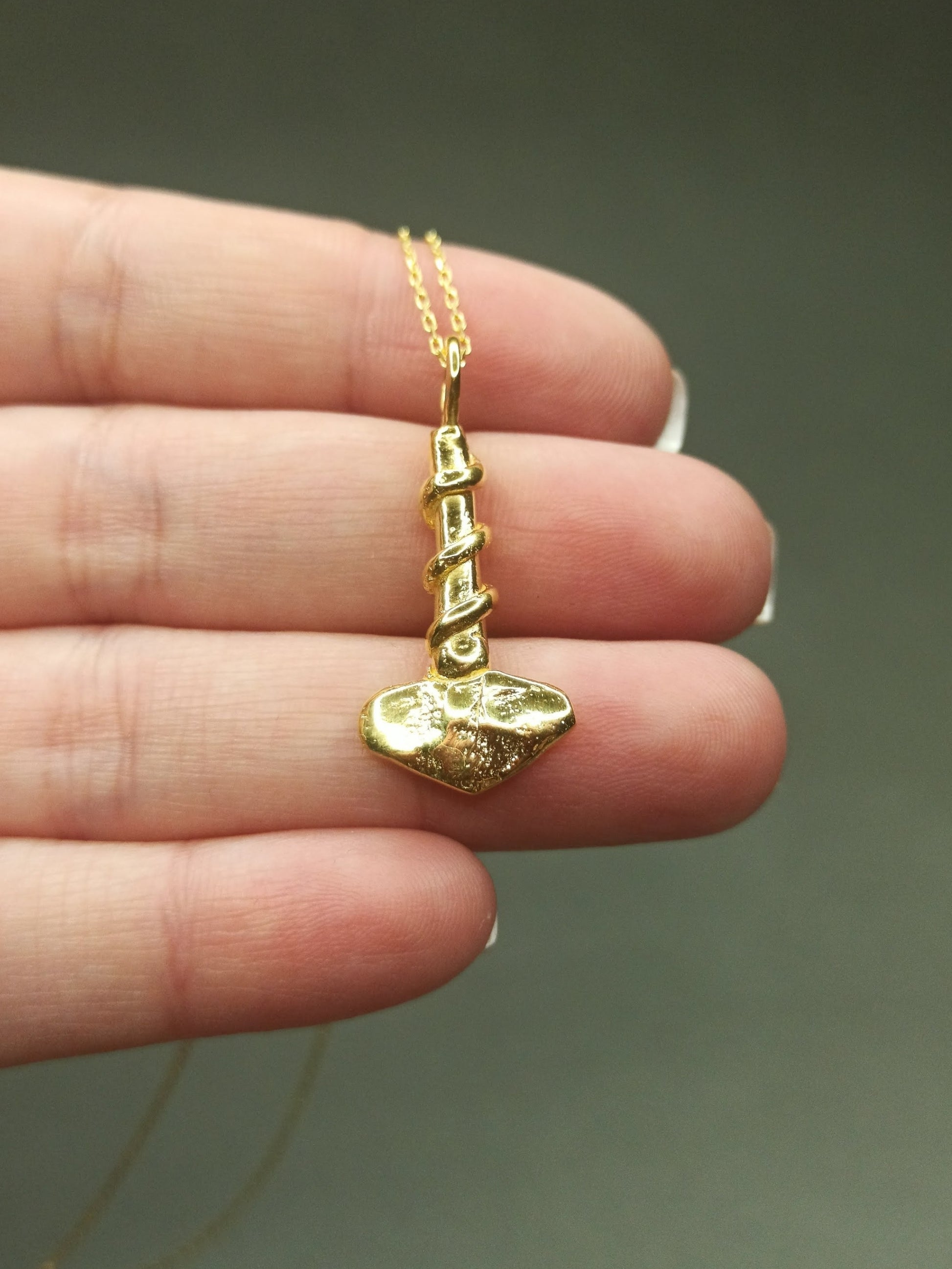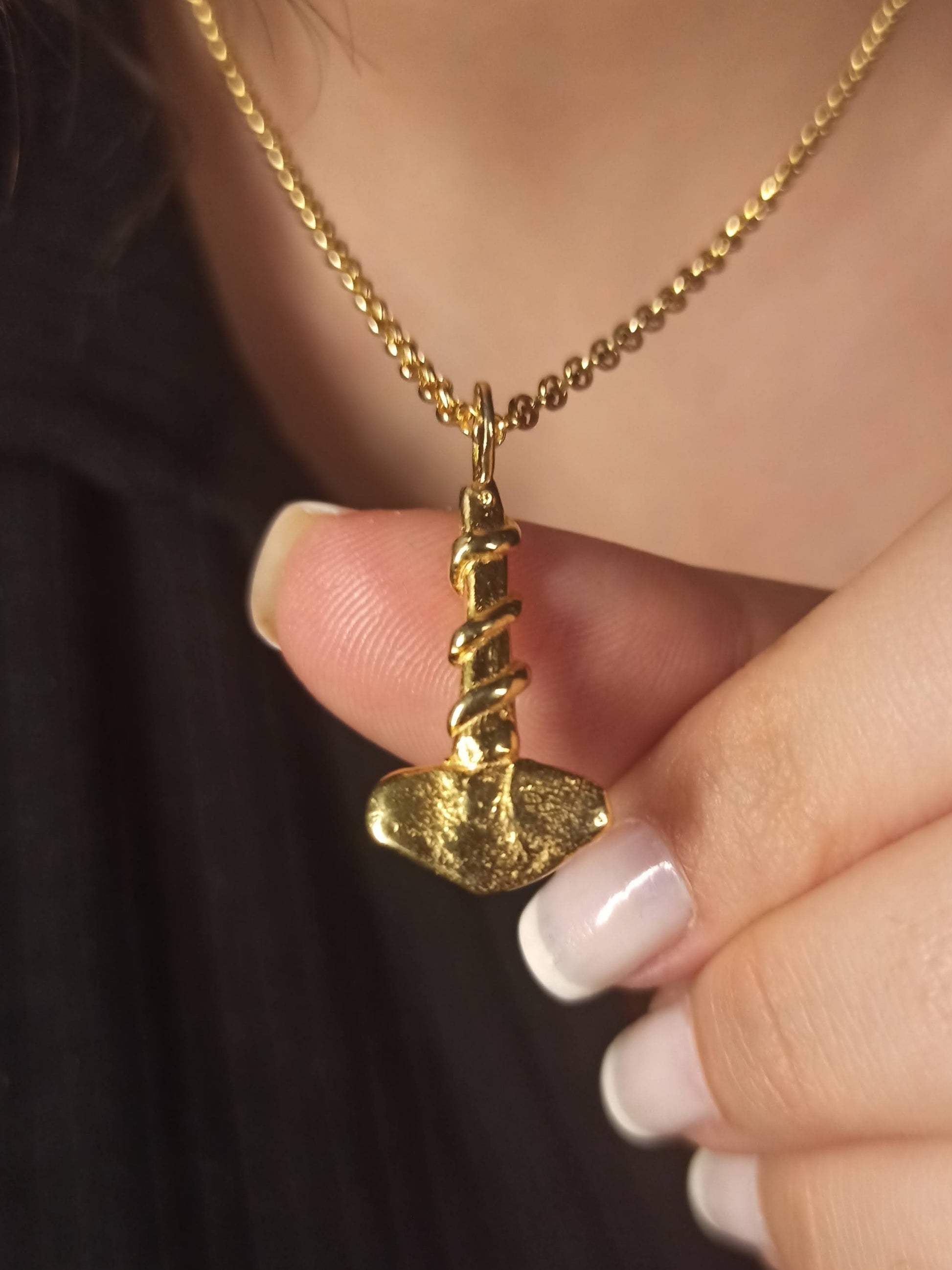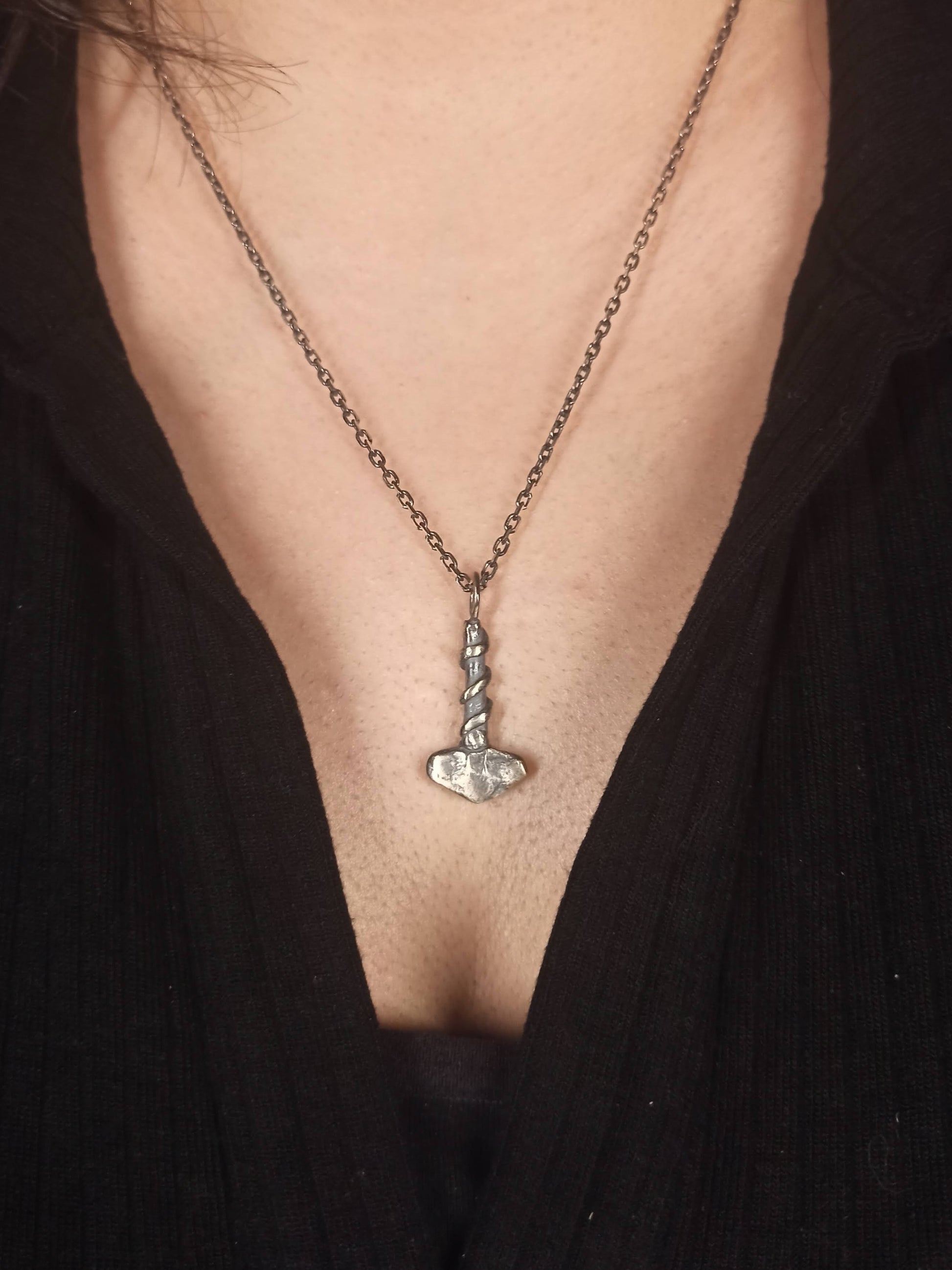 Bu Viking çekici kolye, İskandinav mitolojisinin en güçlü sembollerinden biri olan Thor’un çekici Mjölnir’den ilham almıştır.