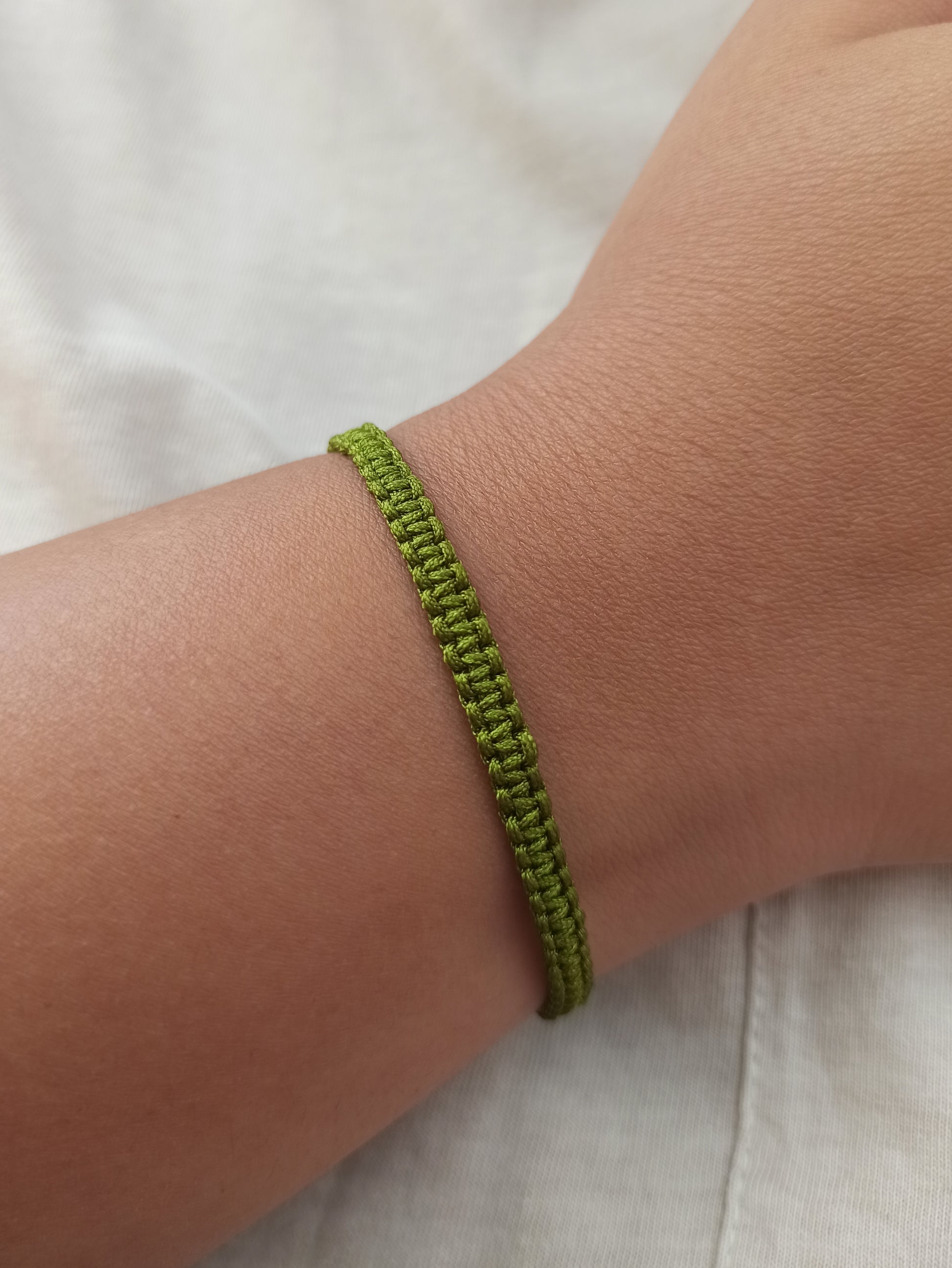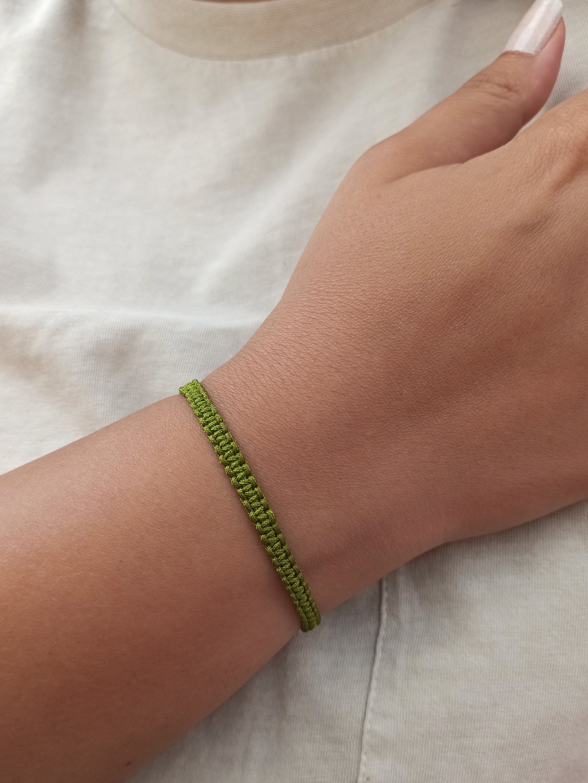 Yüksek kaliteli el örgüsü haki yeşil ipli unisex bileklik