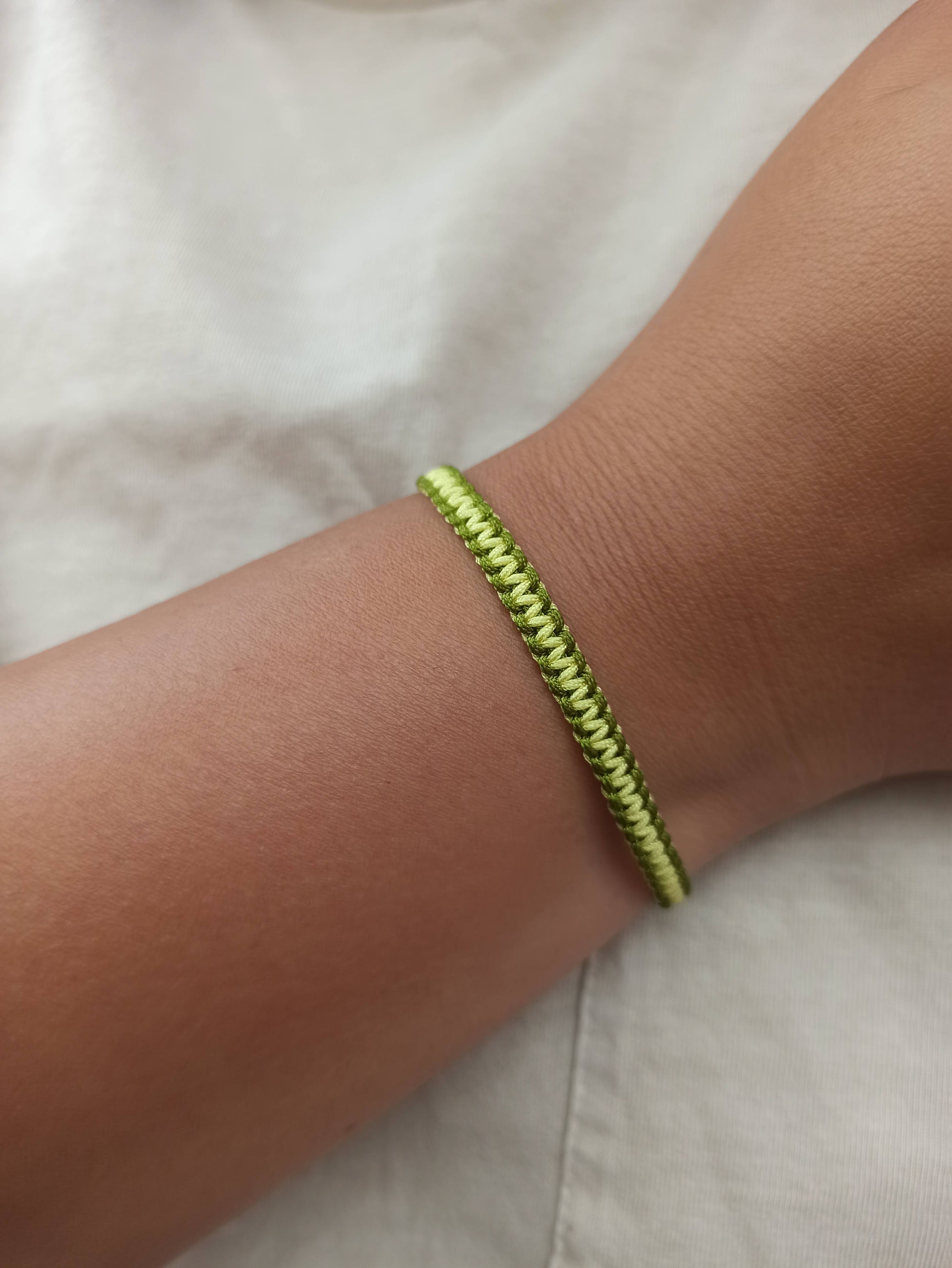 Haki yeşil ve limon sarısı renkli makrome ip bileklik