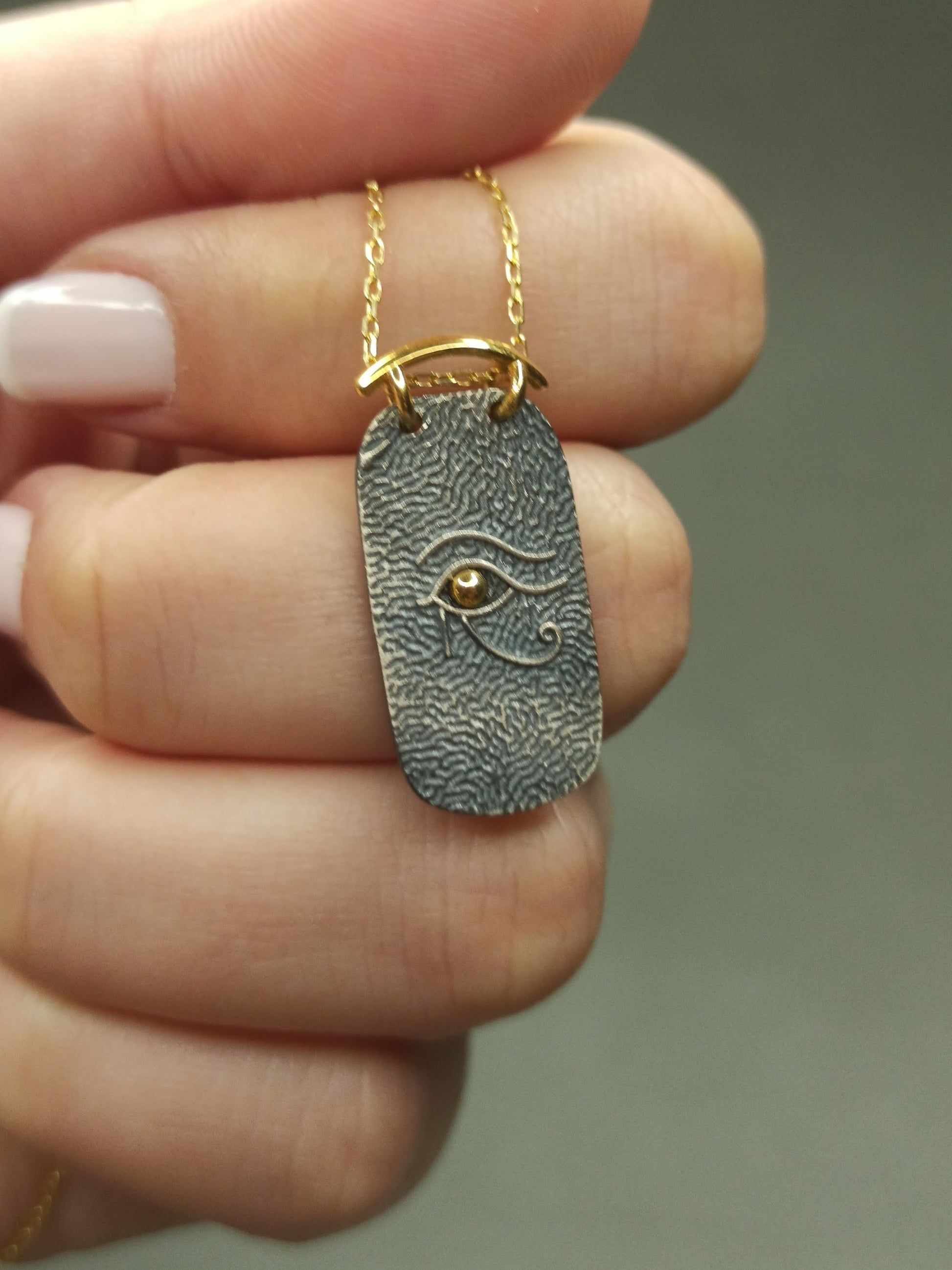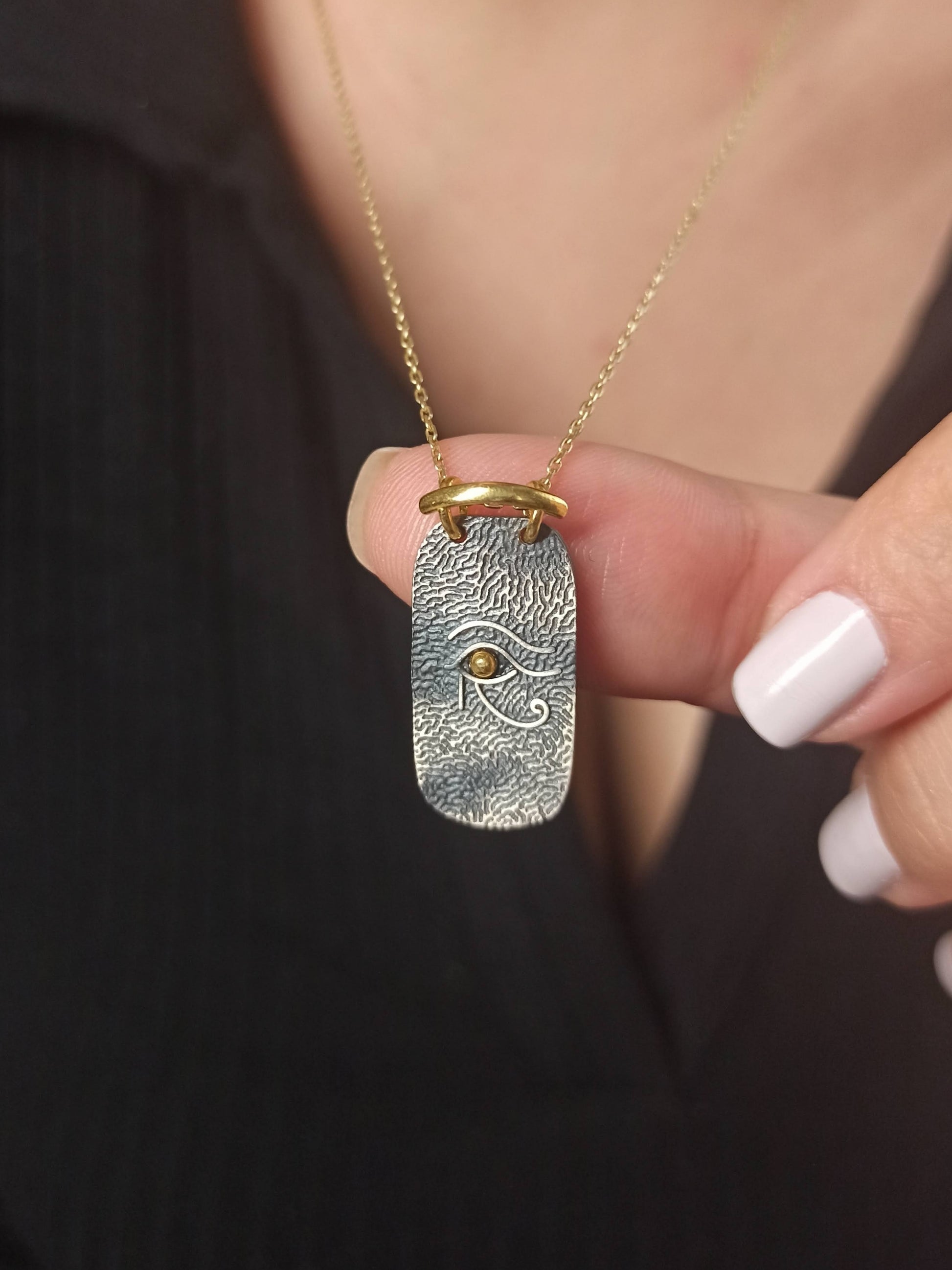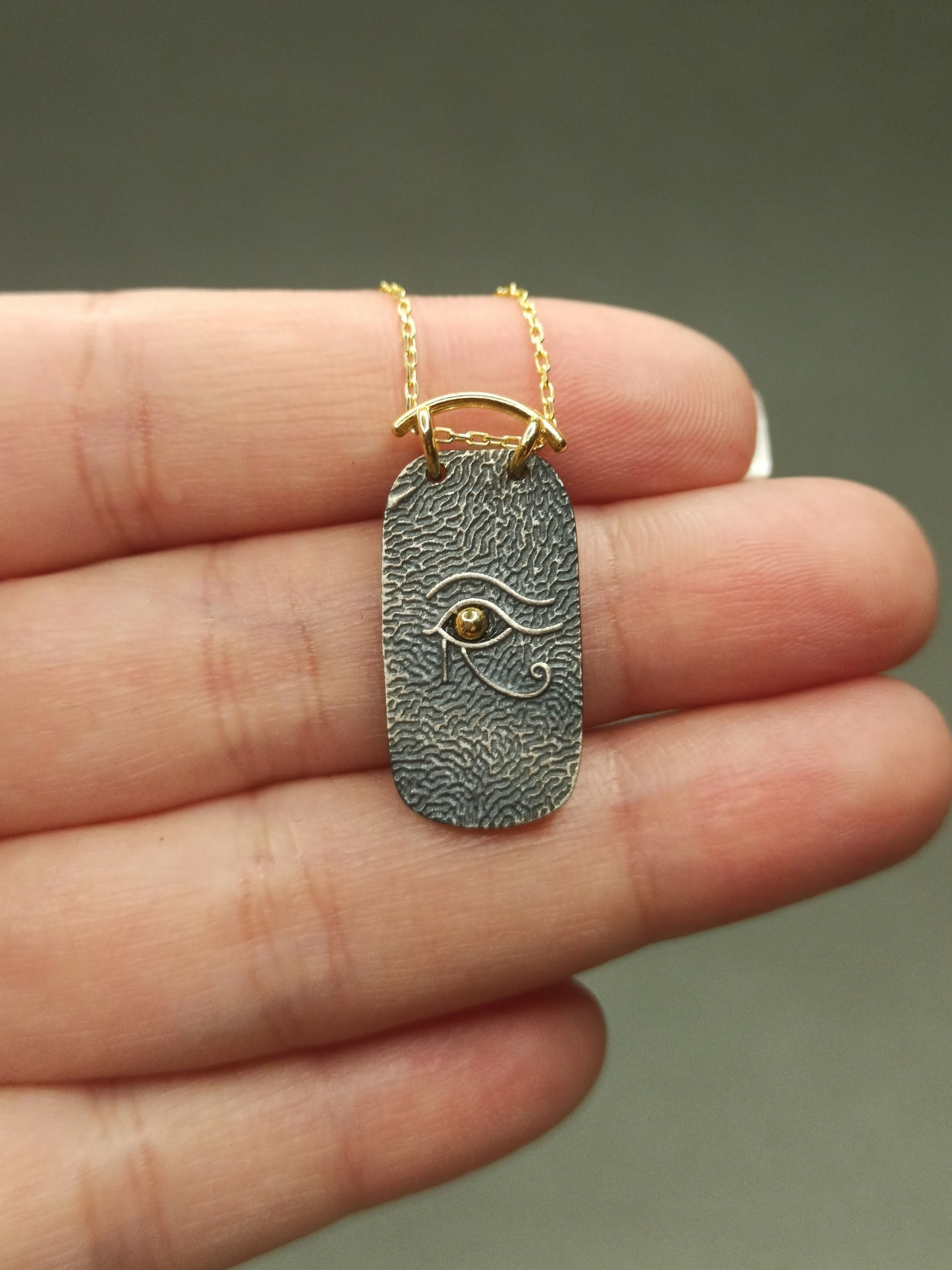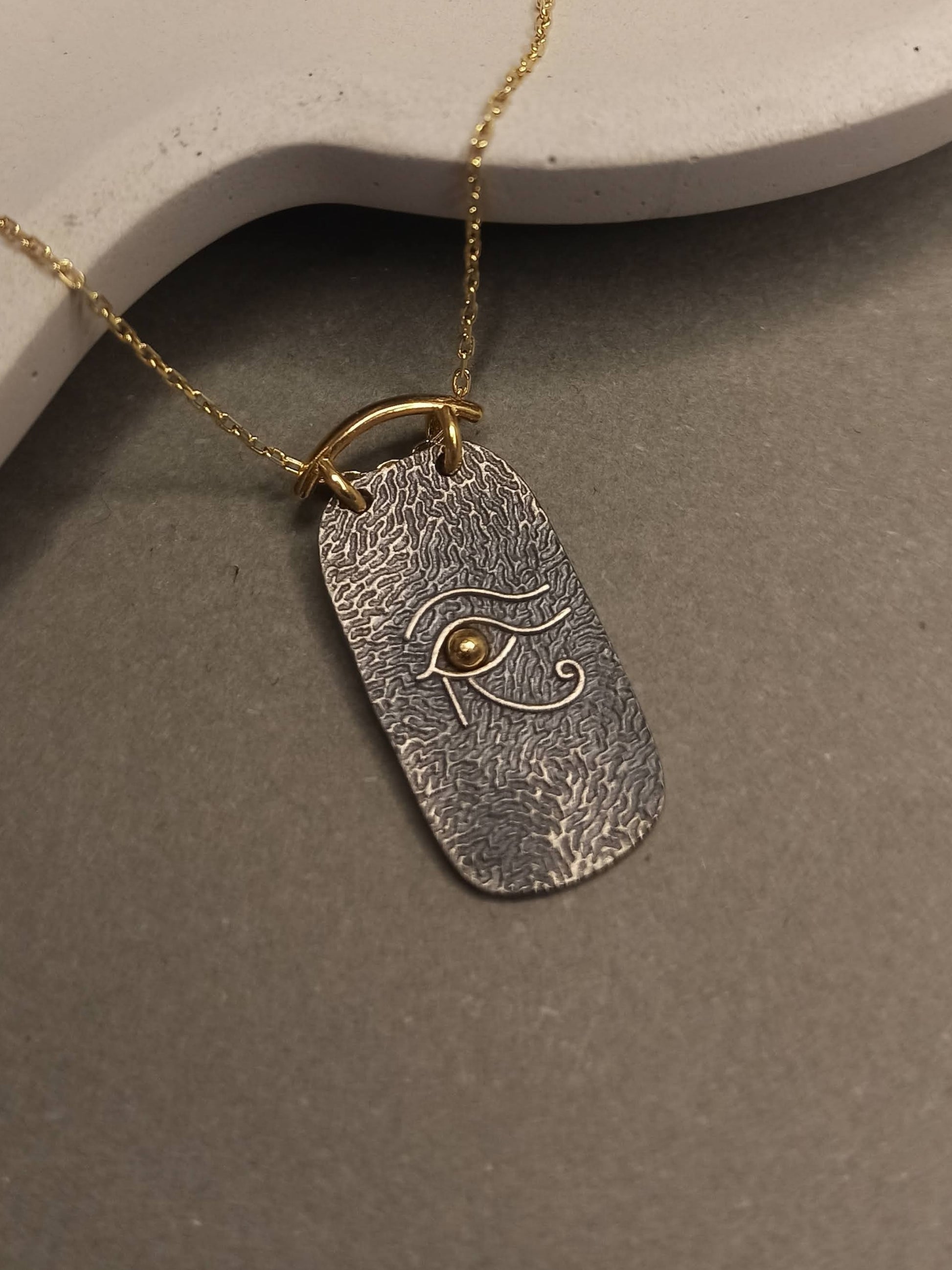 Tasarım: Çift renkli Horus’un Gözü madalyon, vintage ve detaylı işçilik