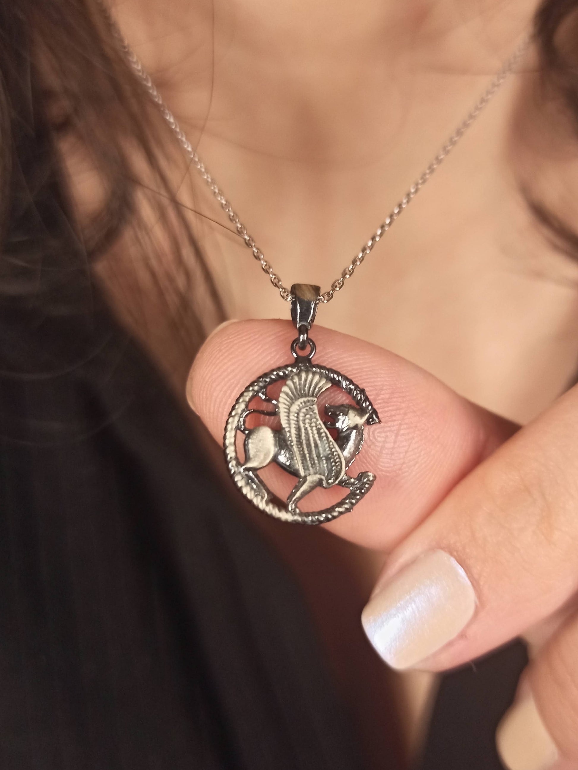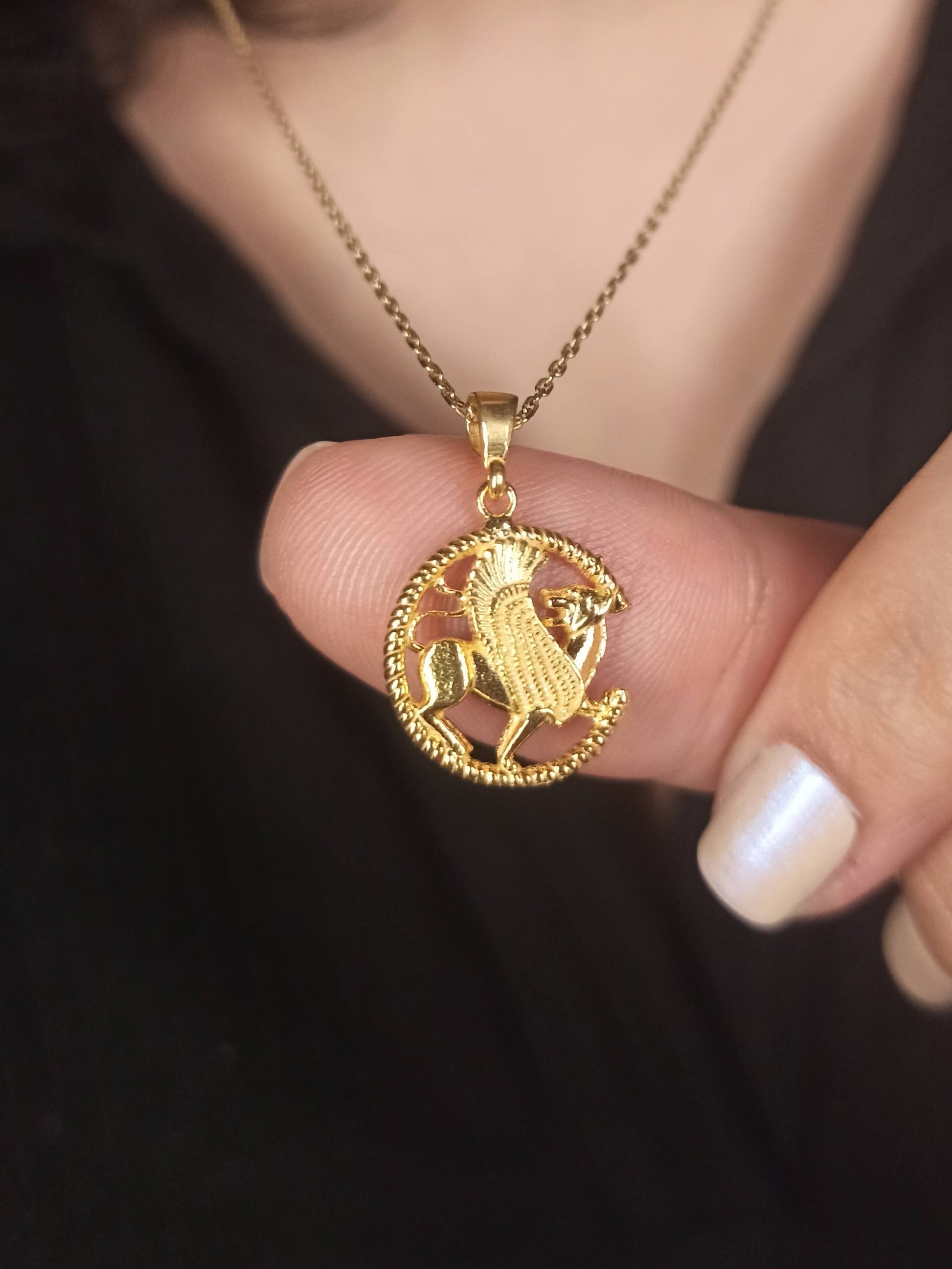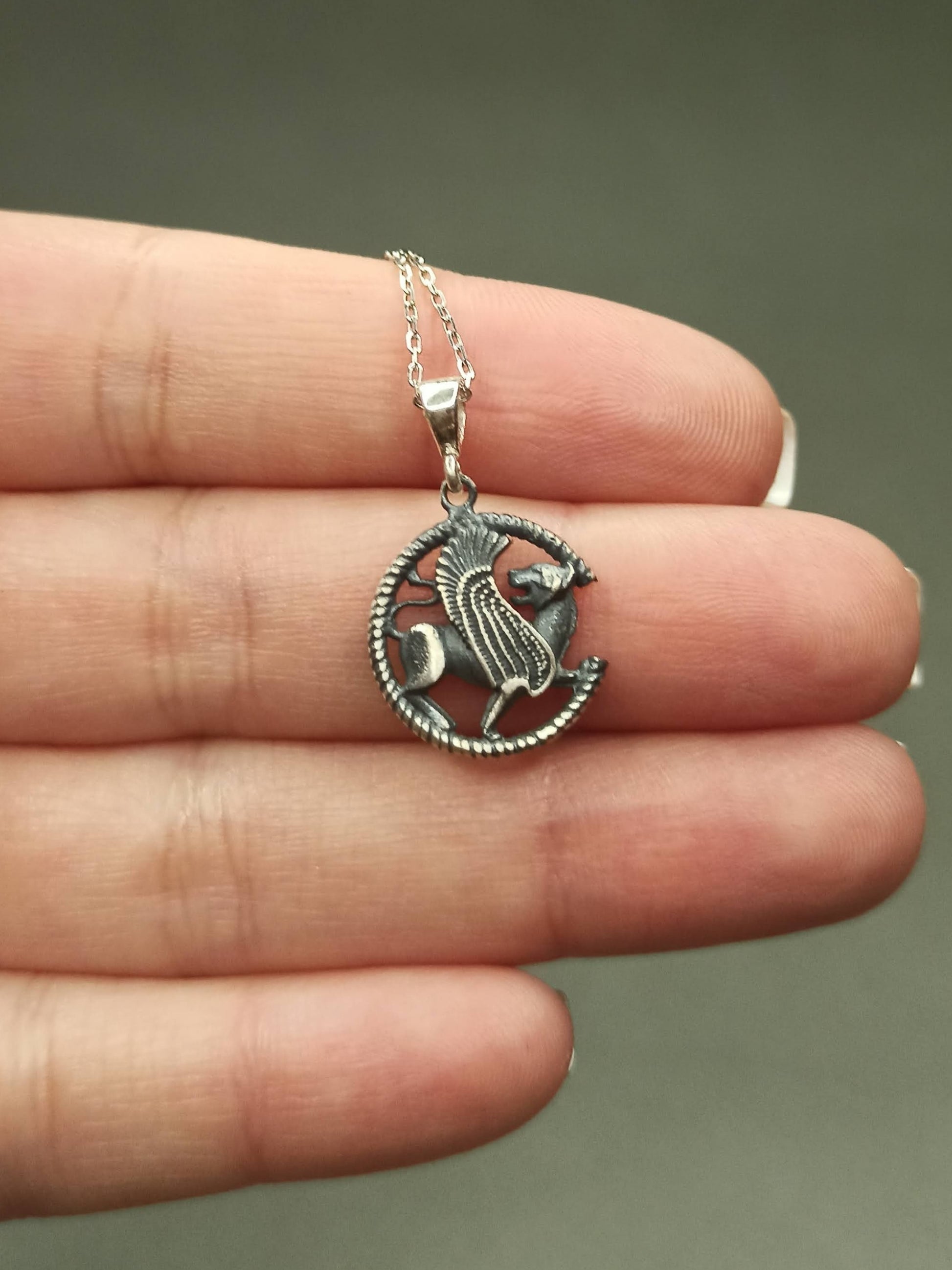 Kanatlı Aslan Sembollü Gümüş Kolye