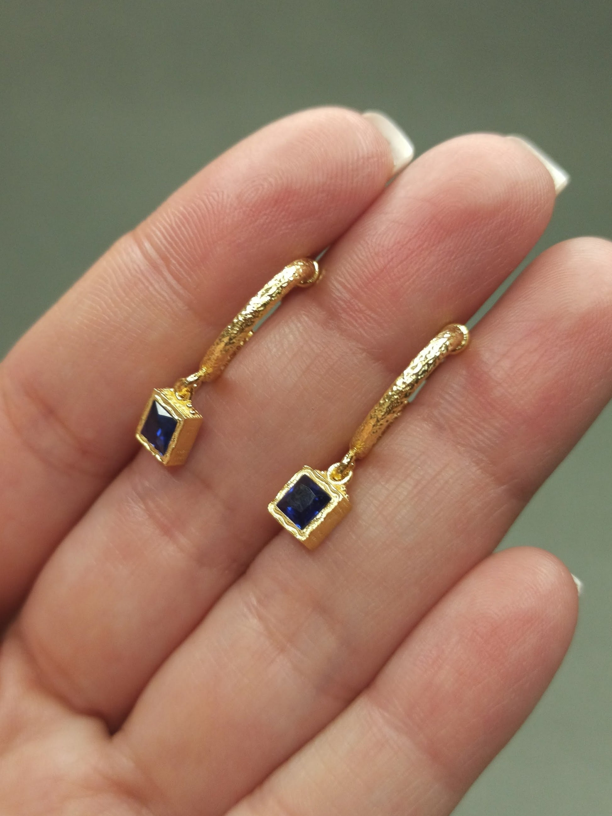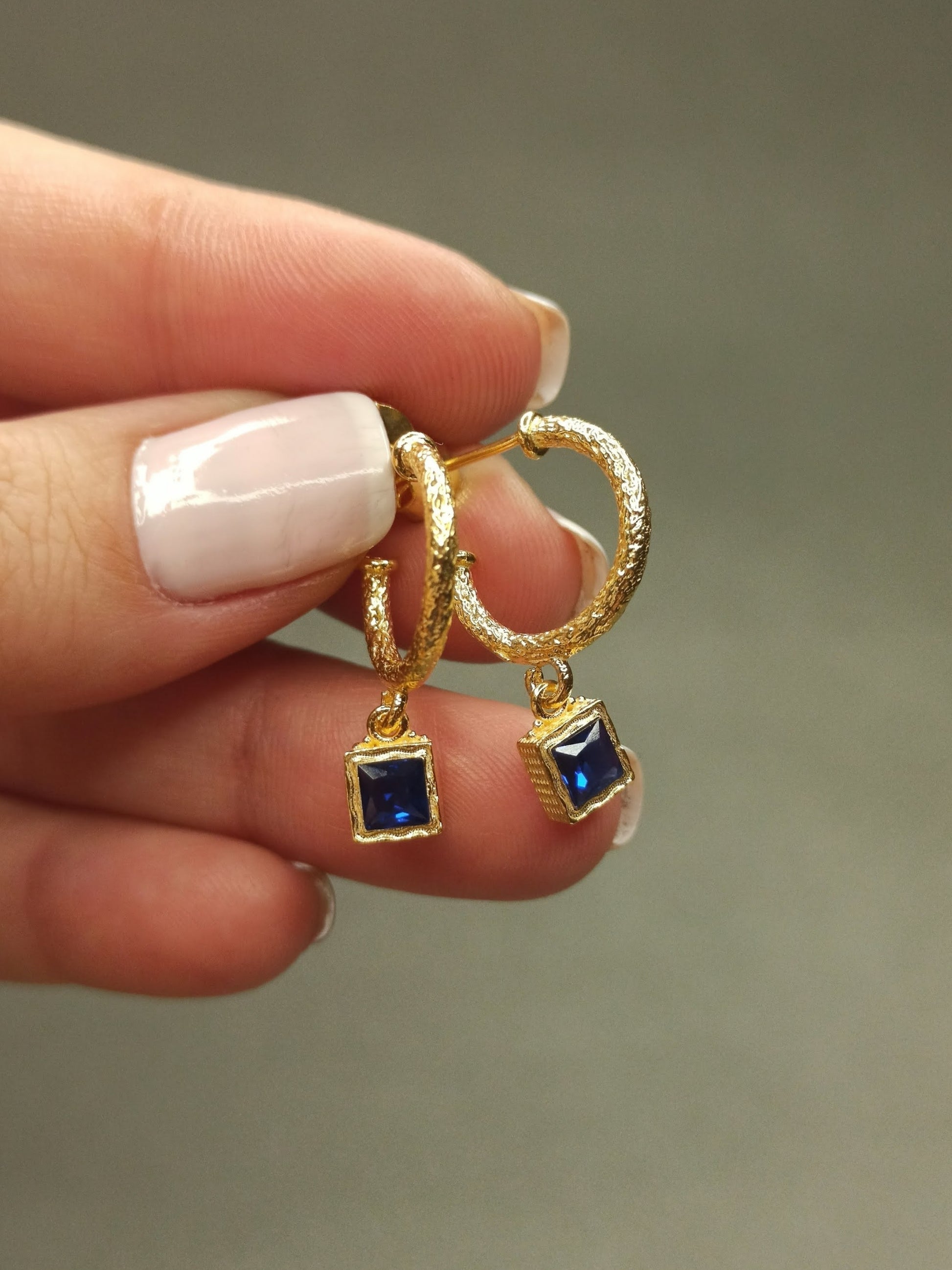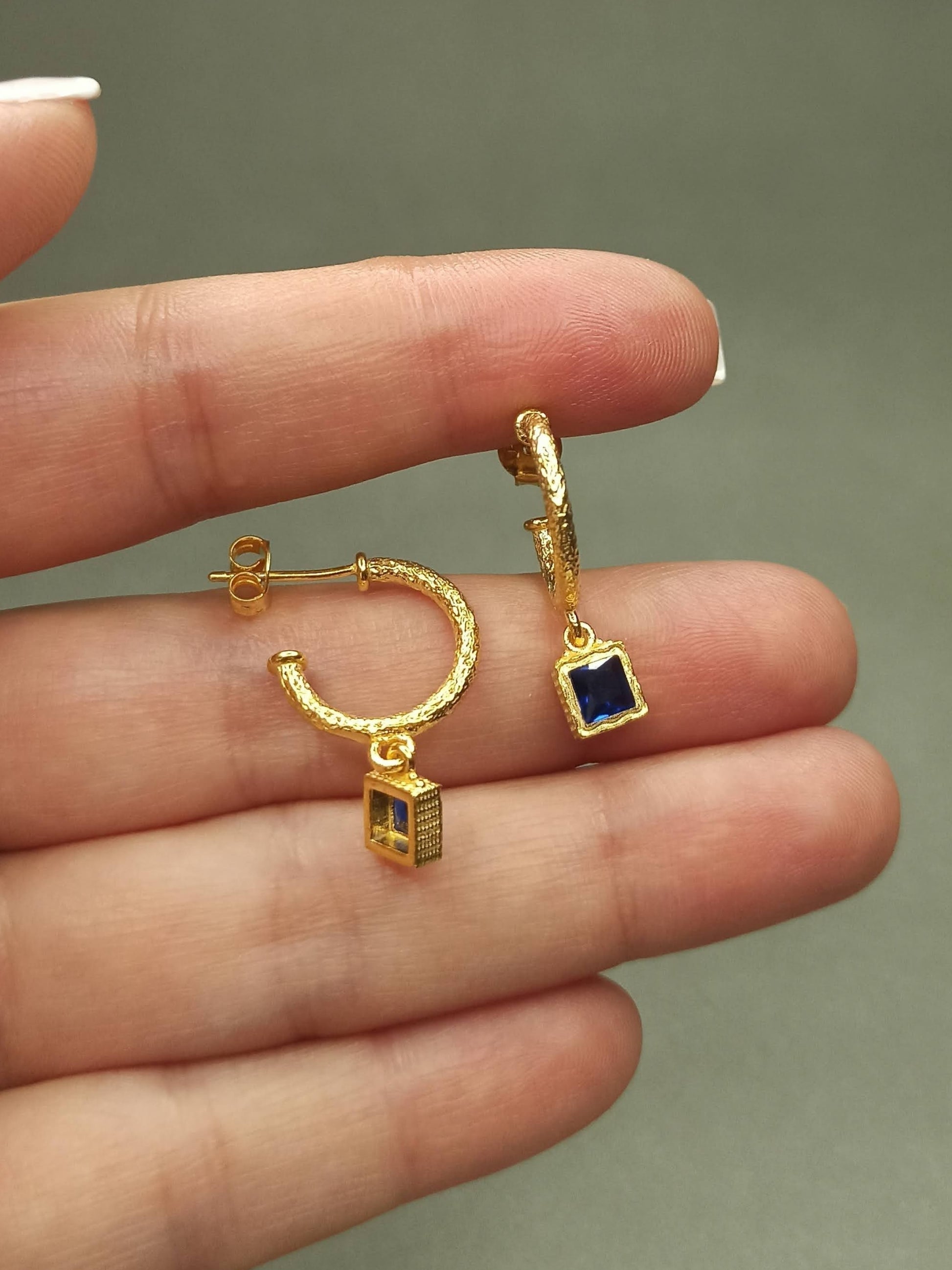 Kare Lacivert Taşlı Sallantılı Halka Küpe | BHCL Co.