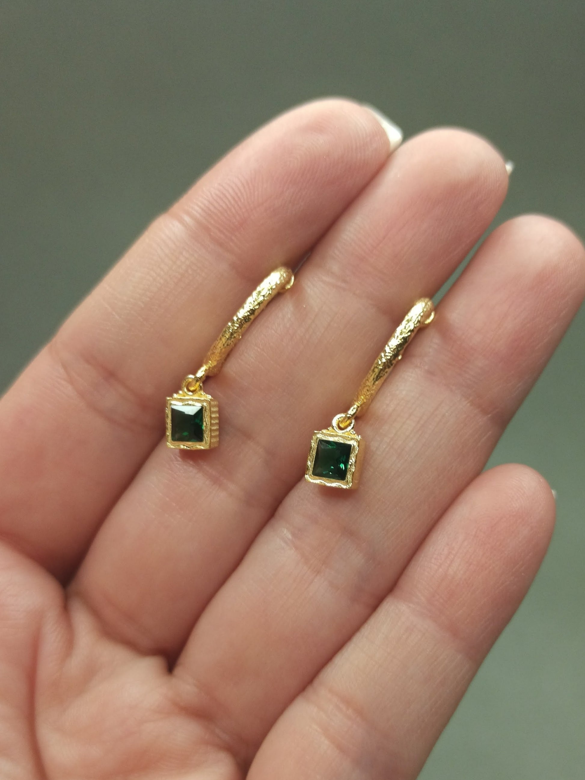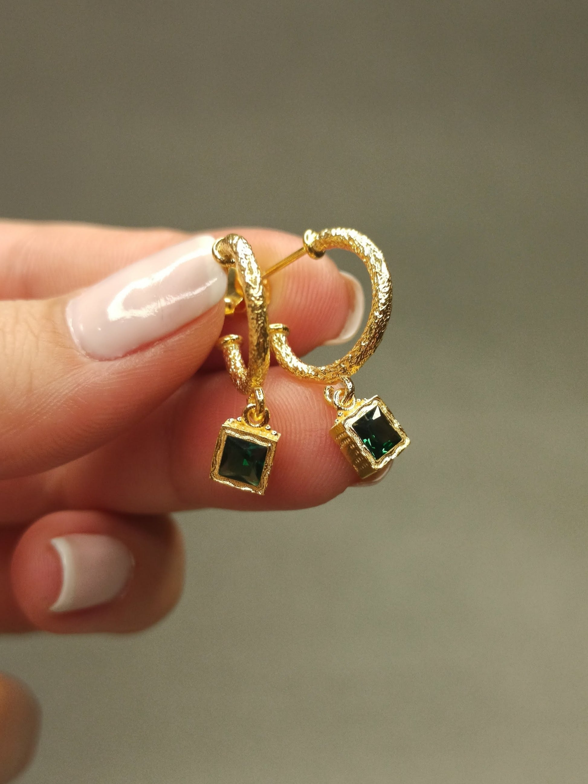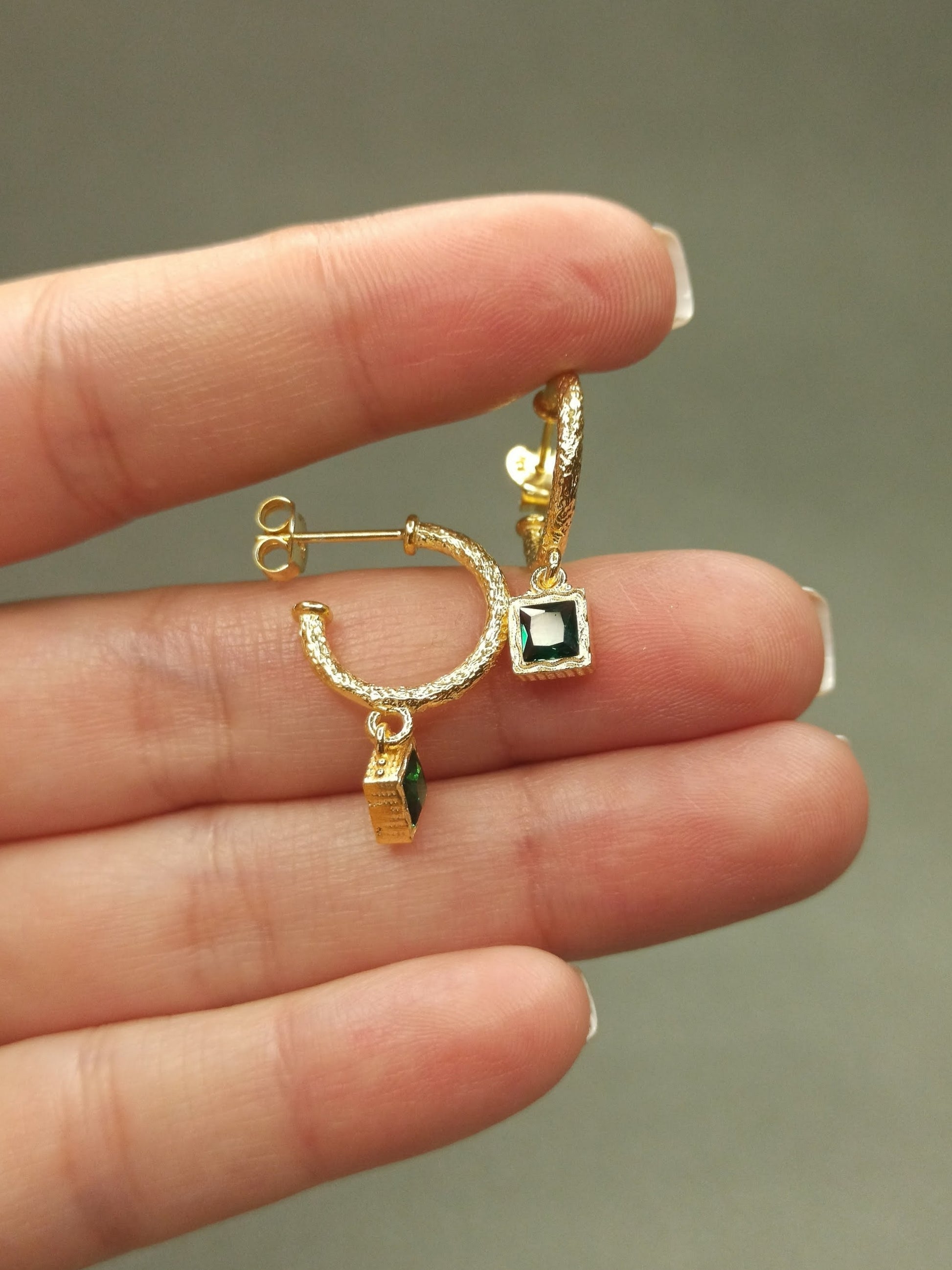 Kare Yeşil Taşlı Sallantılı Halka Küpe | BHCL Co.