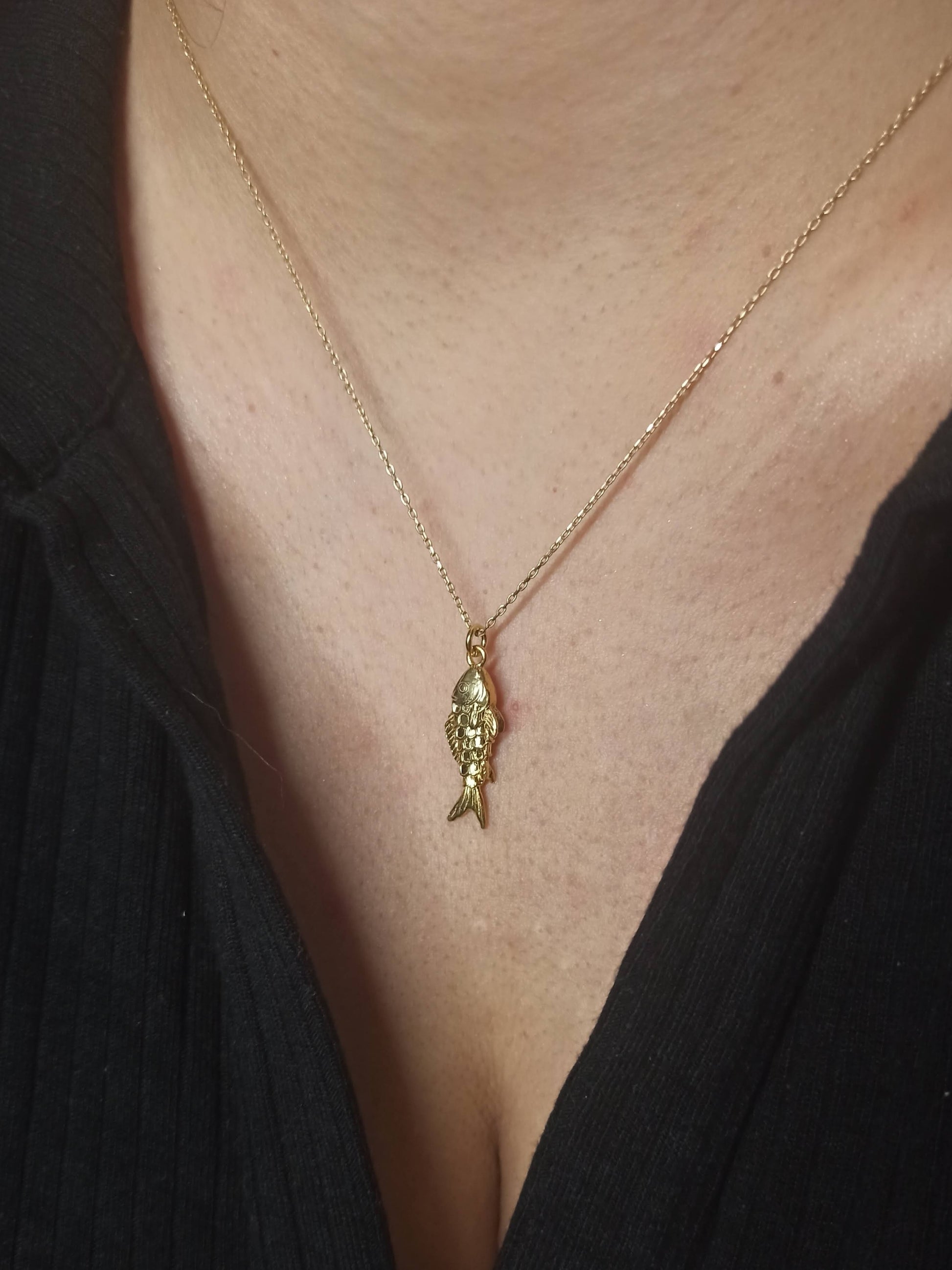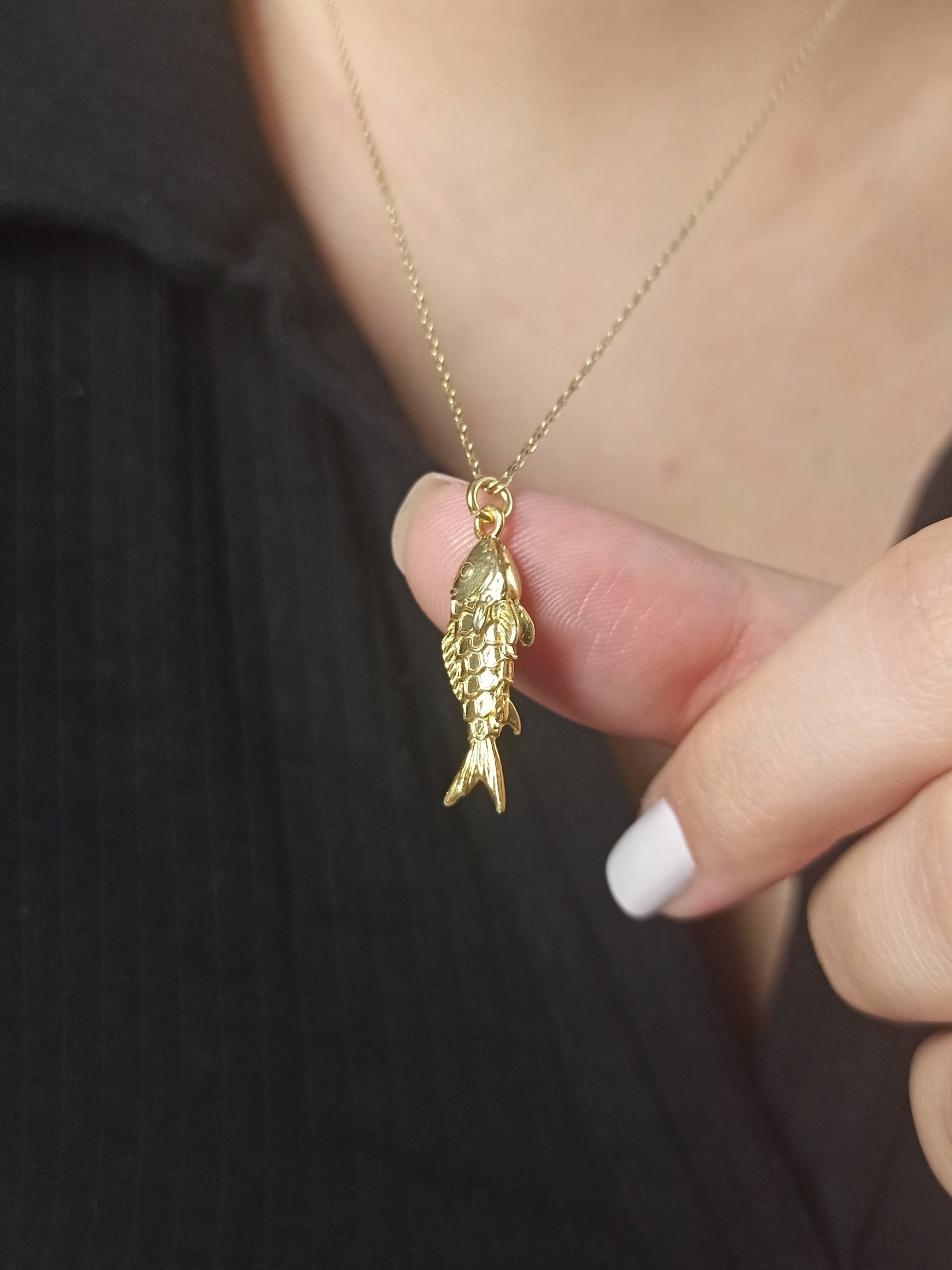 Balık figürü, birçok kültürde bolluk, bereket ve iyi şansı temsil eden güçlü bir semboldür. Bu zarif mini kolye, detaylı pul dokusu ve dolgun 3 boyutlu formuyla canlı ve gerçekçi bir deniz esintisi taşır. Minimalist ve şık tasarımı sayesinde, ister tek başına ister katmanlı kolyelerinizle mükemmel uyum sağlar.