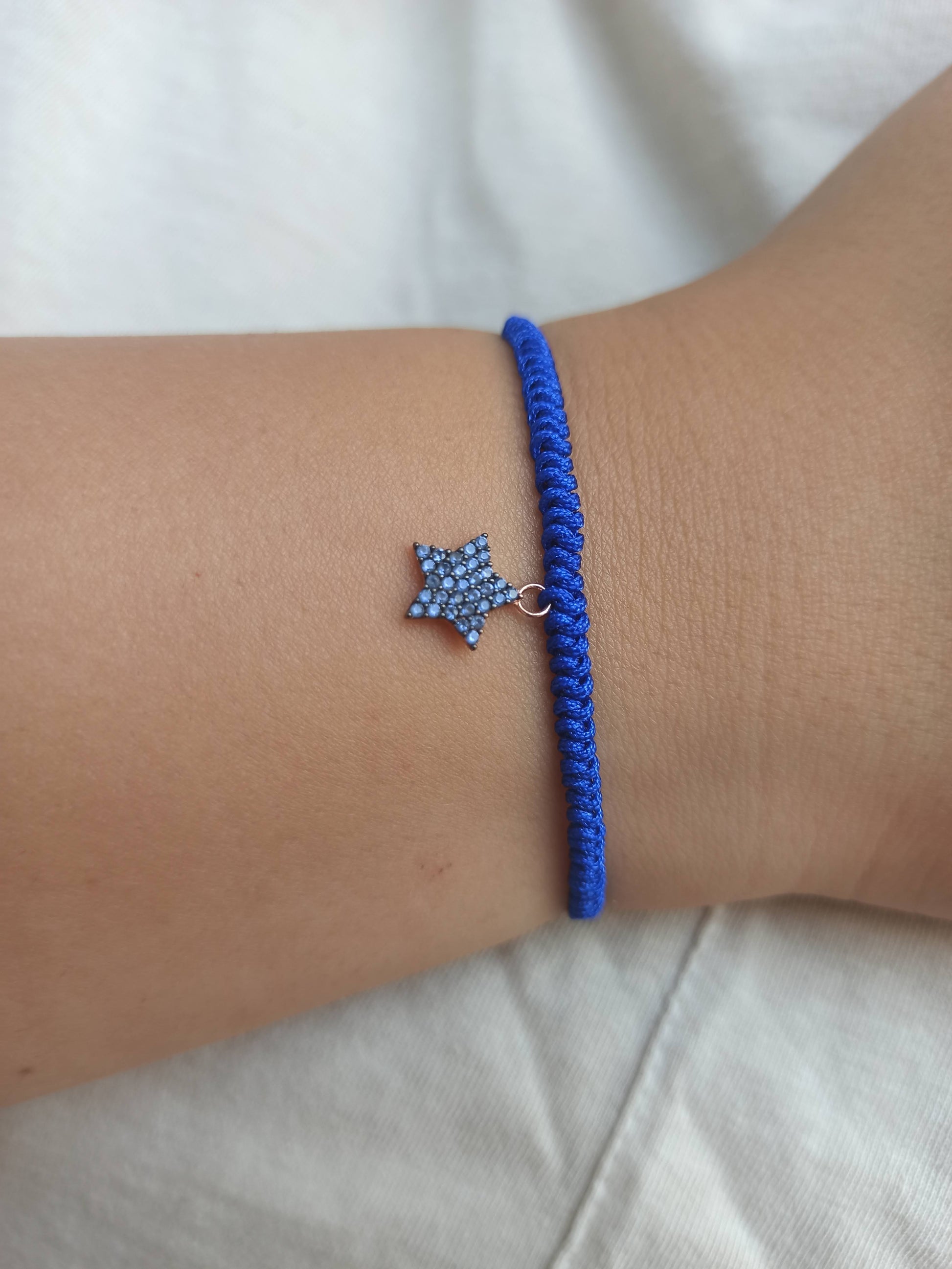 Mavi taşlı gümüş yıldız ipli bileklik