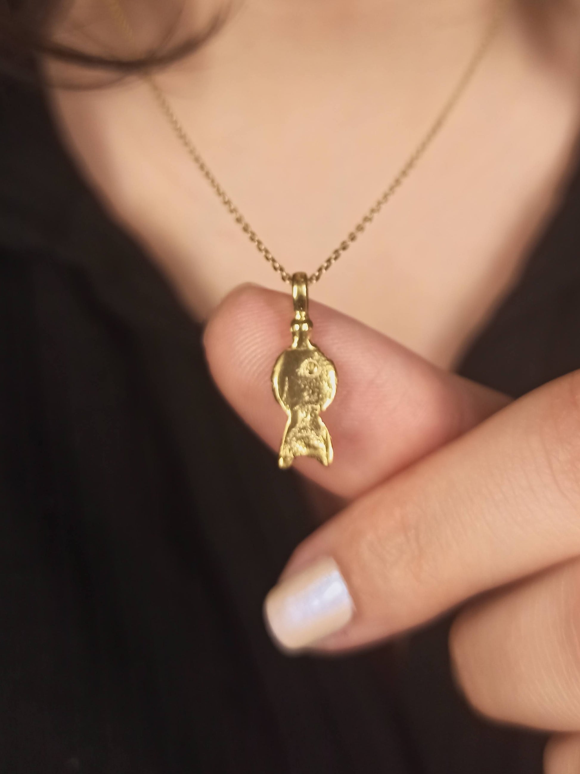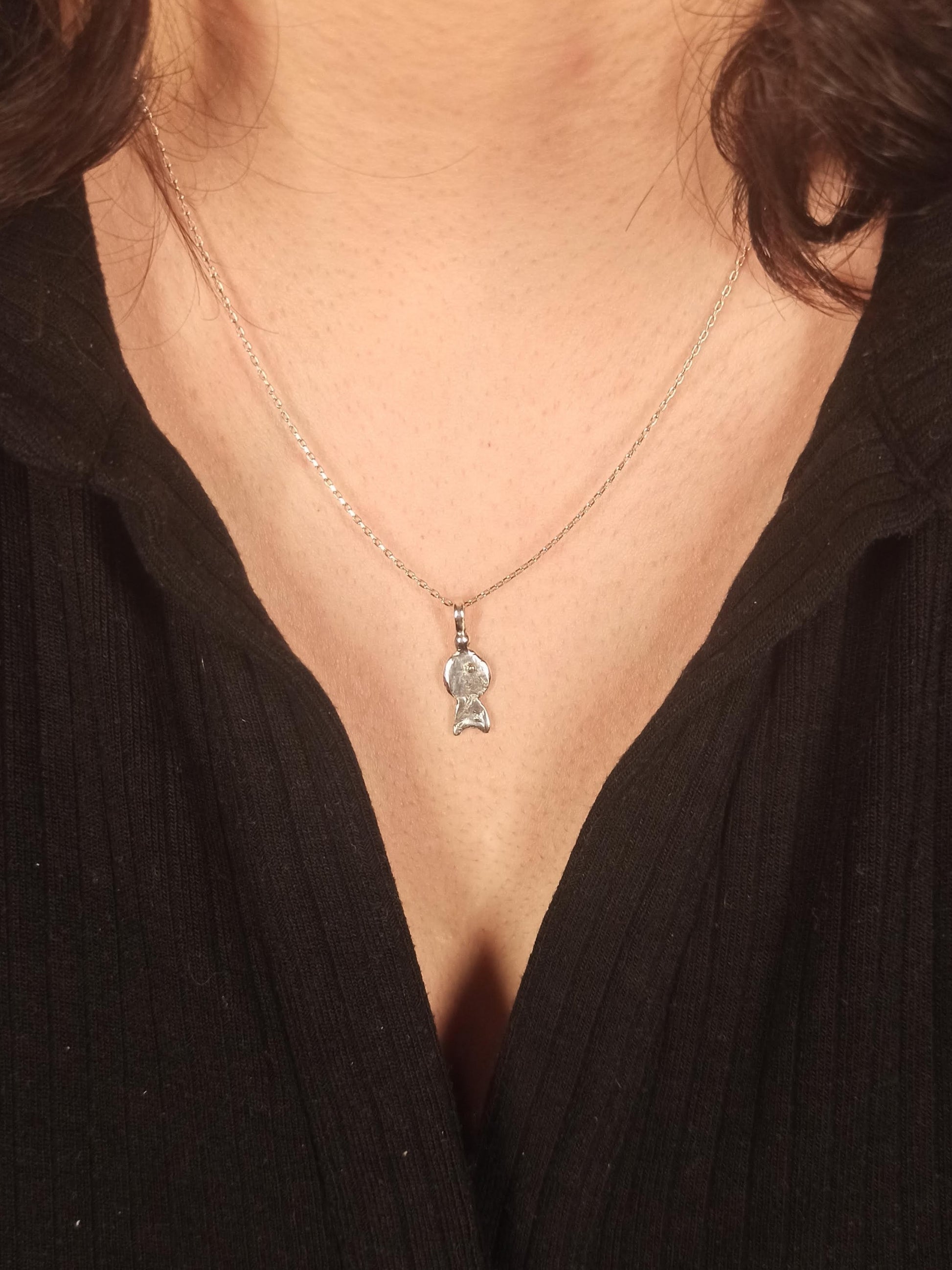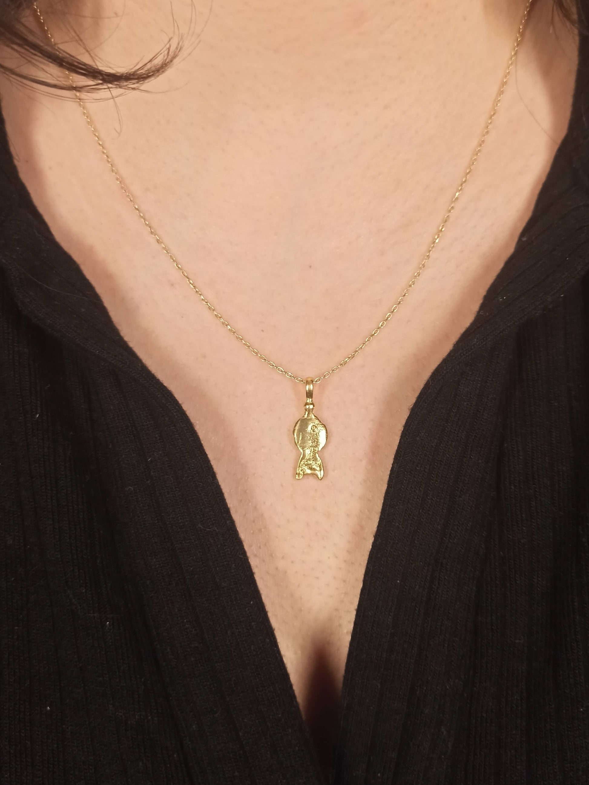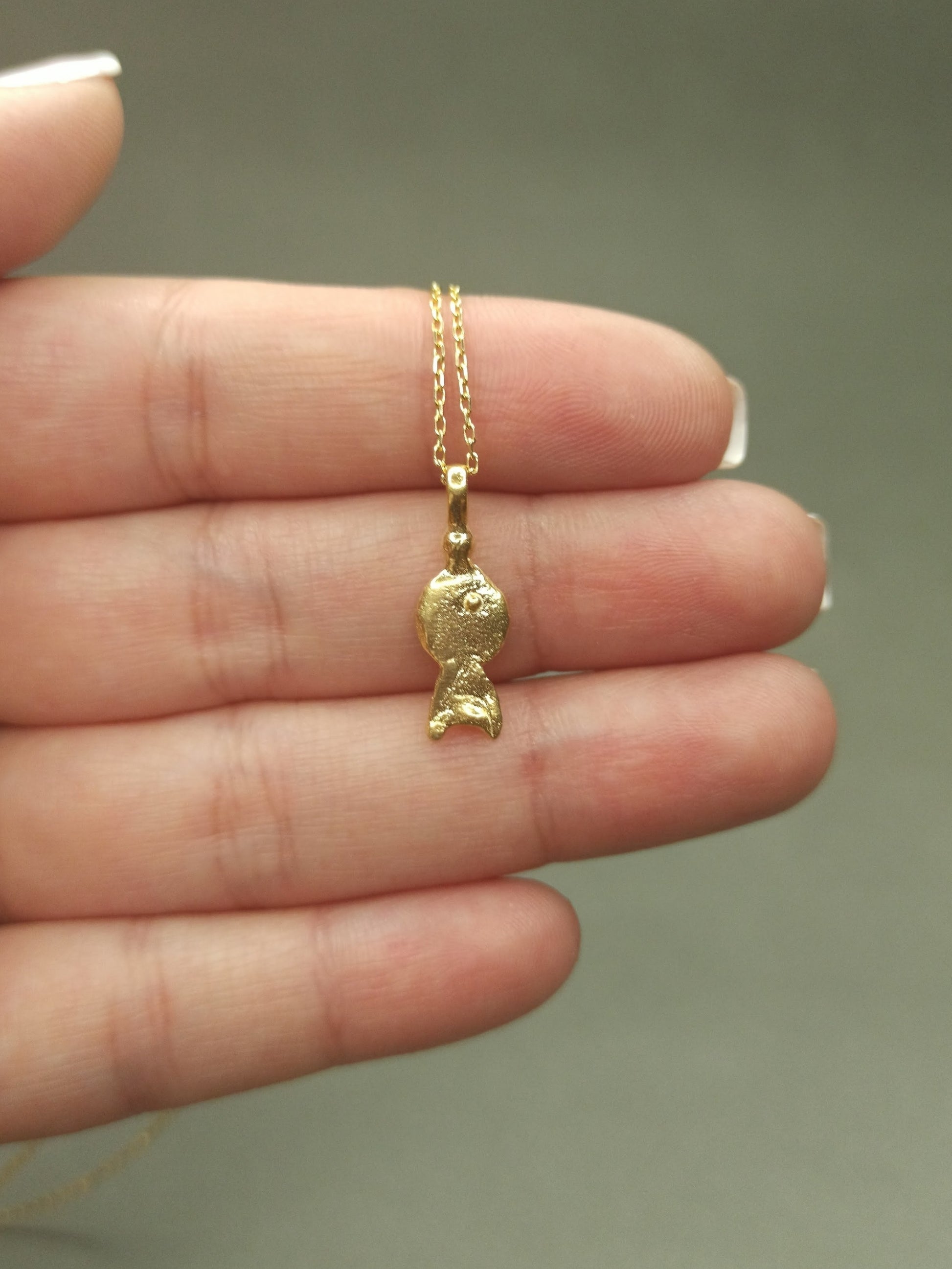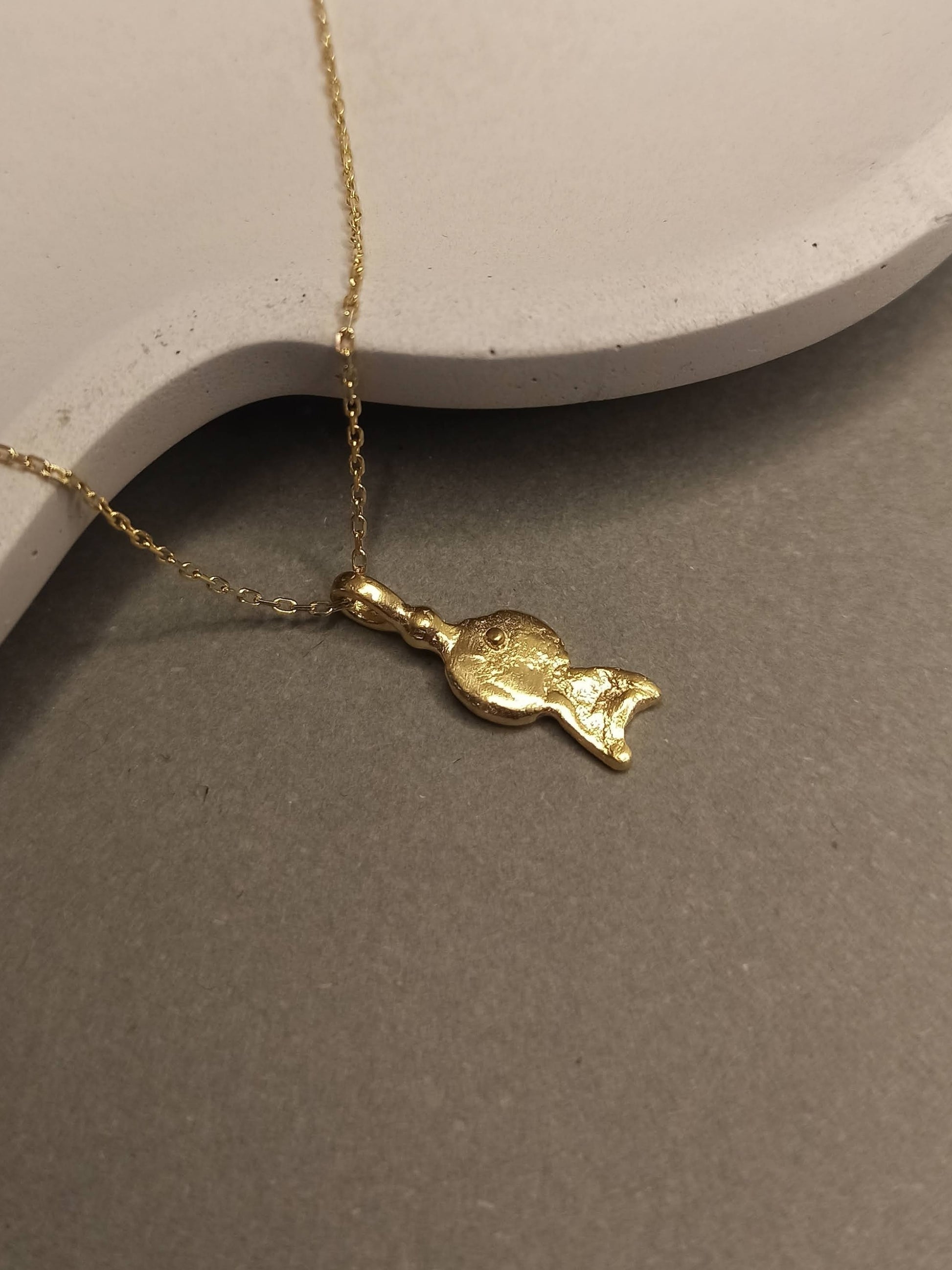 Balık figürü, birçok kültürde bolluk, bereket ve iyi şansı temsil eden güçlü bir semboldür. Bu zarif mini kolye, detaylı pul dokusu ve dolgun 3 boyutlu formuyla canlı ve gerçekçi bir deniz esintisi taşır. Minimalist ve şık tasarımı sayesinde, ister tek başına ister katmanlı kolyelerinizle mükemmel uyum sağlar.