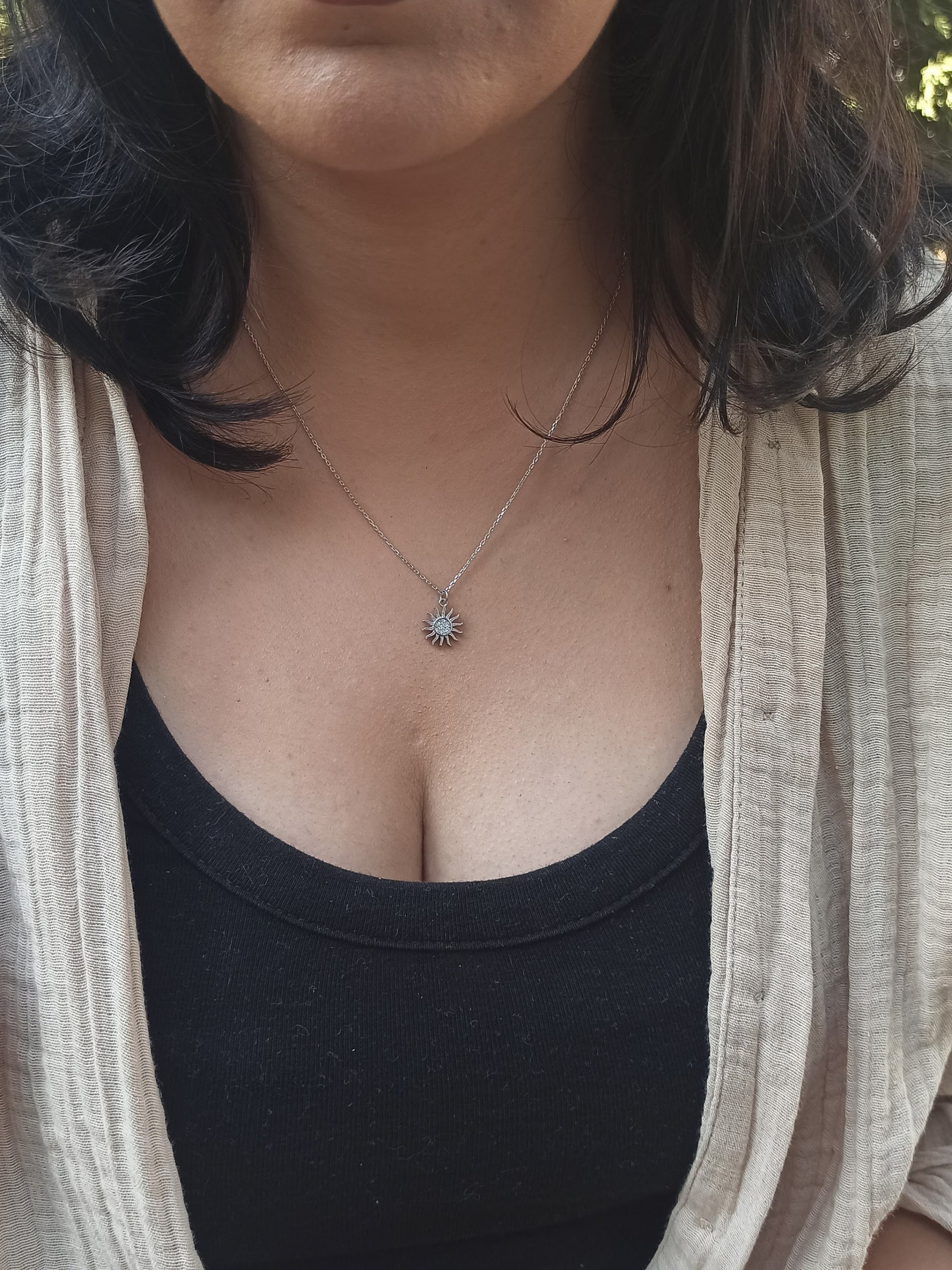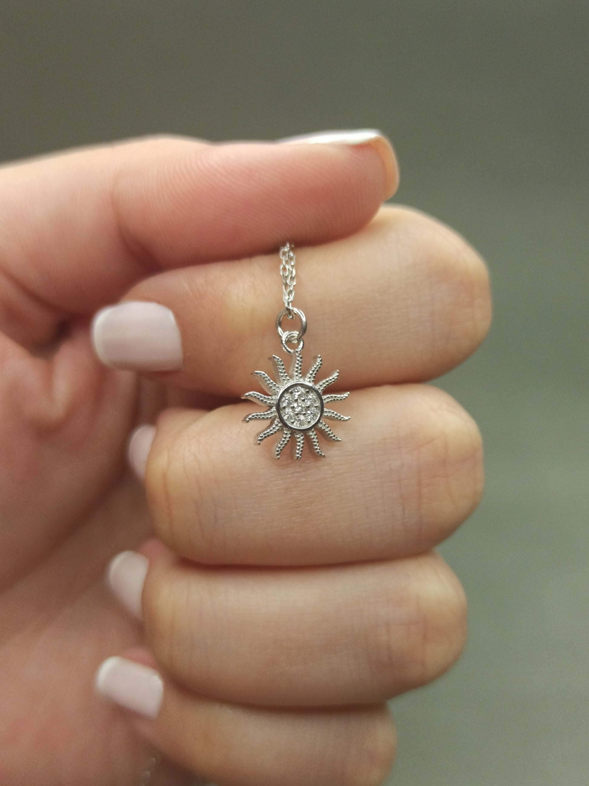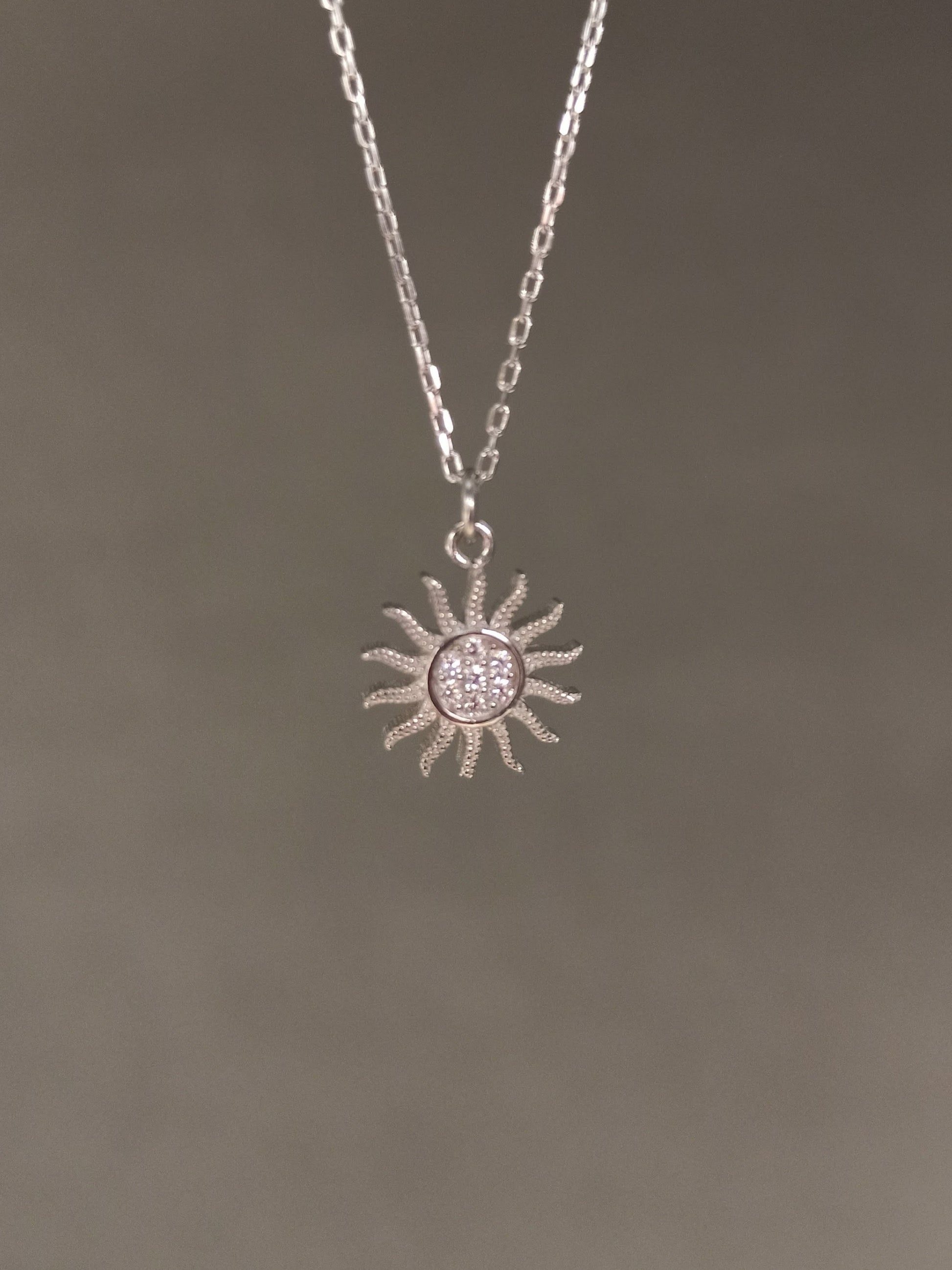 Mini Güneş Kolye, Zirkon Taşlı - Gümüş
