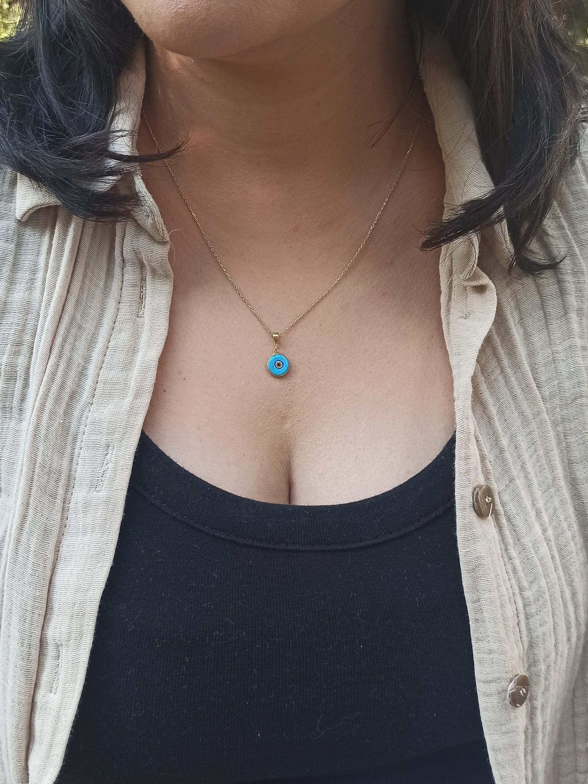 Nazar Boncuğu, geleneksel olarak kem gözden ve negatif enerjiden koruma sağlamasıyla bilinir. İster tek başına ister favori kolyelerinizle katmanlayarak (layering) kullanın; bu kolye her zaman anlamlı bir dokunuş katacaktır