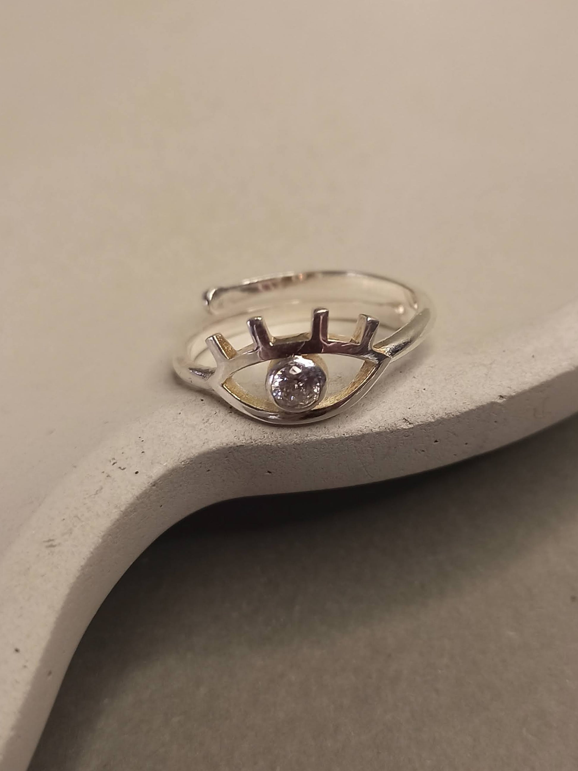Minimalist Gümüş Göz Yüzük, Ayarlanabilir