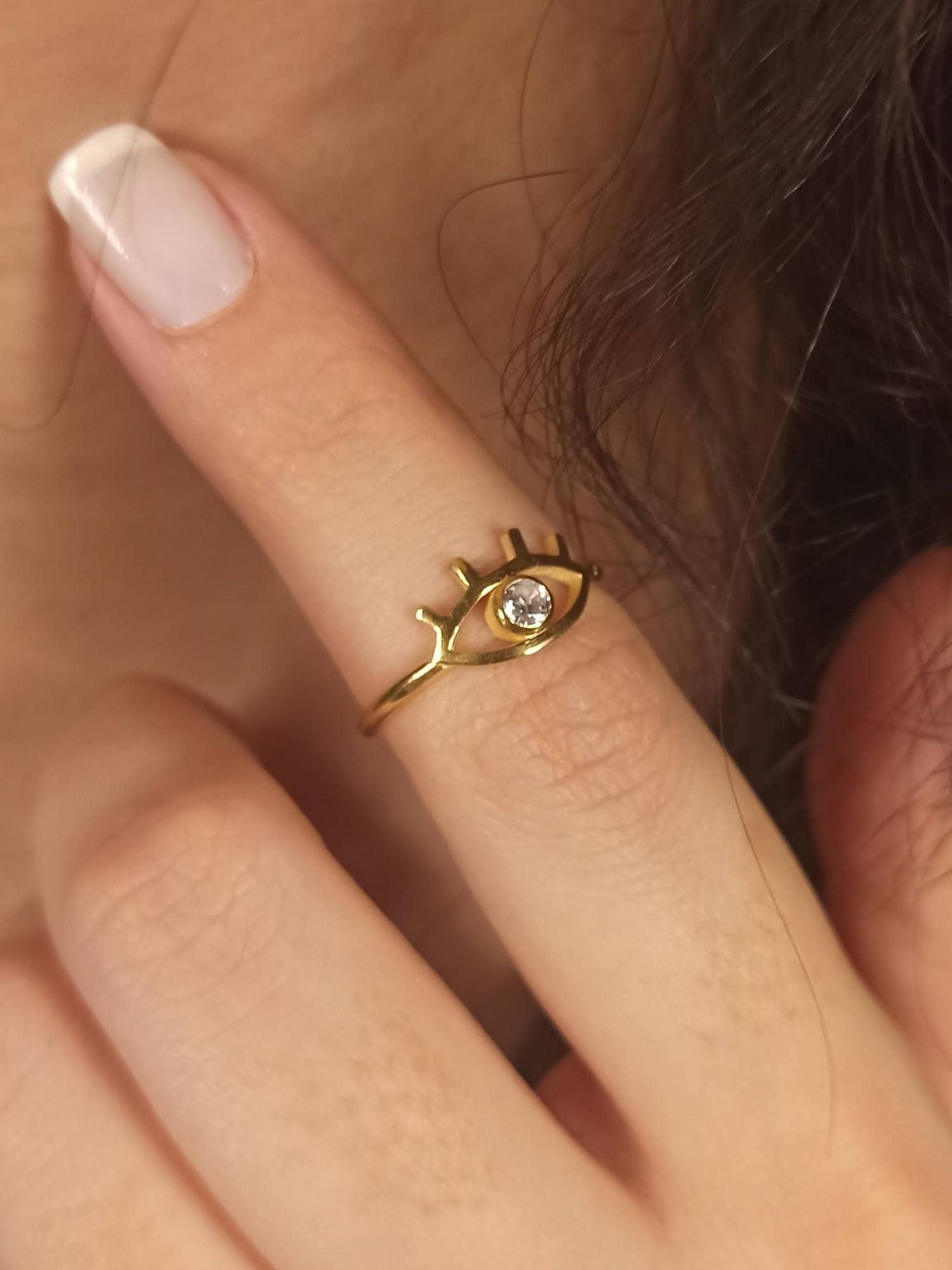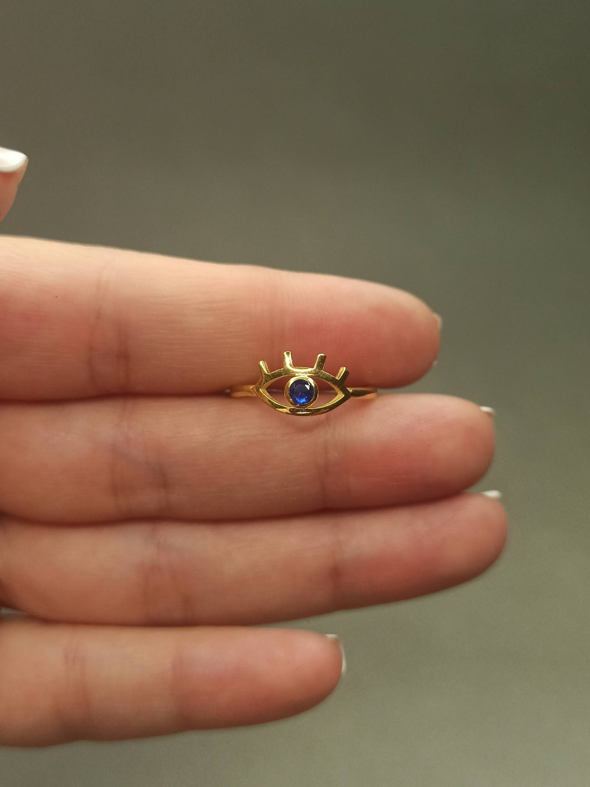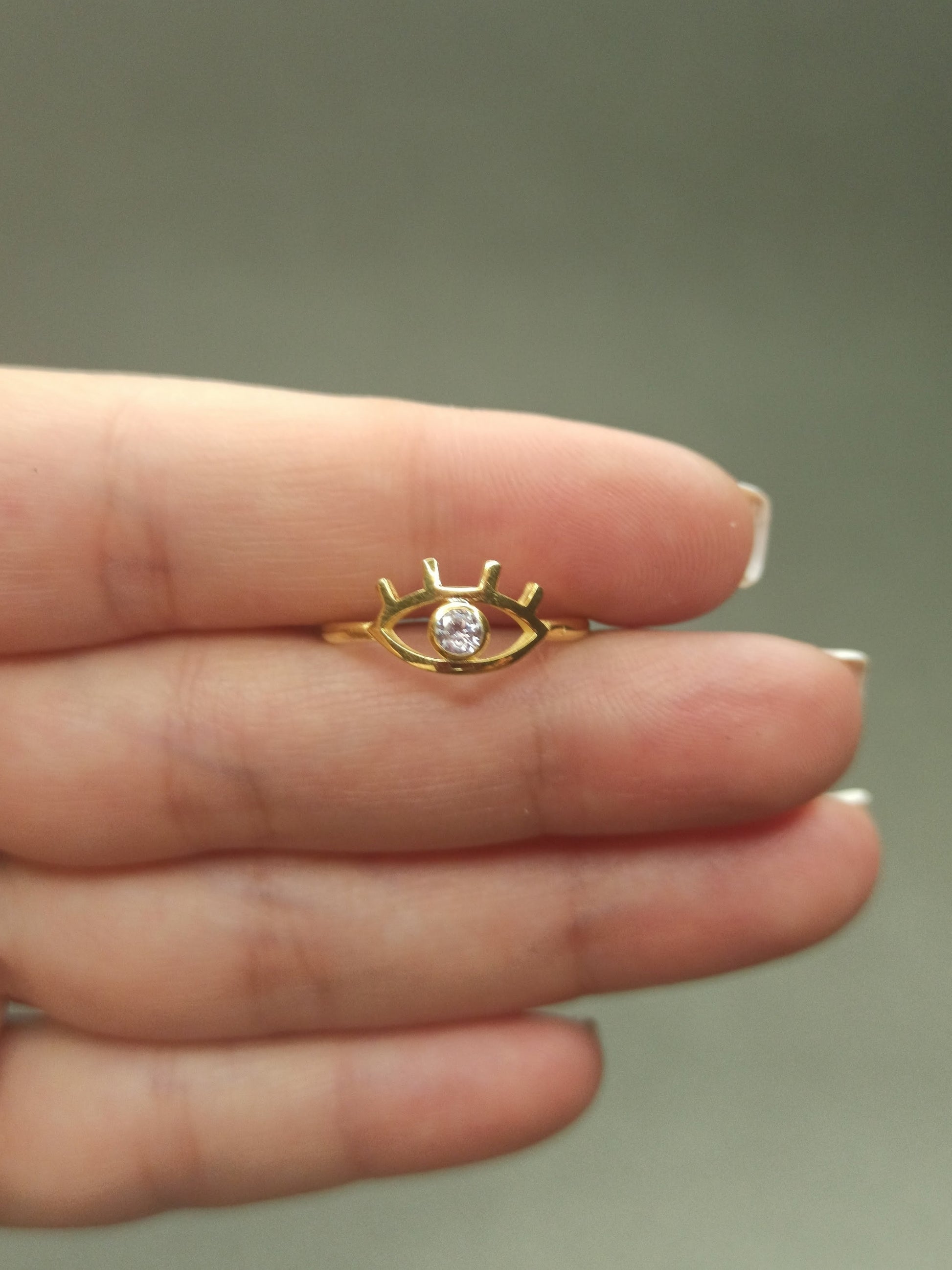 Göz figürü, asırlardır koruma, şans ve sezgiyi temsil eden en güçlü tılsımlardan biridir. Bu minimalist ve modern Göz Yüzük tasarımı, stilinizden ödün vermeden üzerinizdeki negatif enerjiyi uzaklaştırmanıza yardımcı olur.