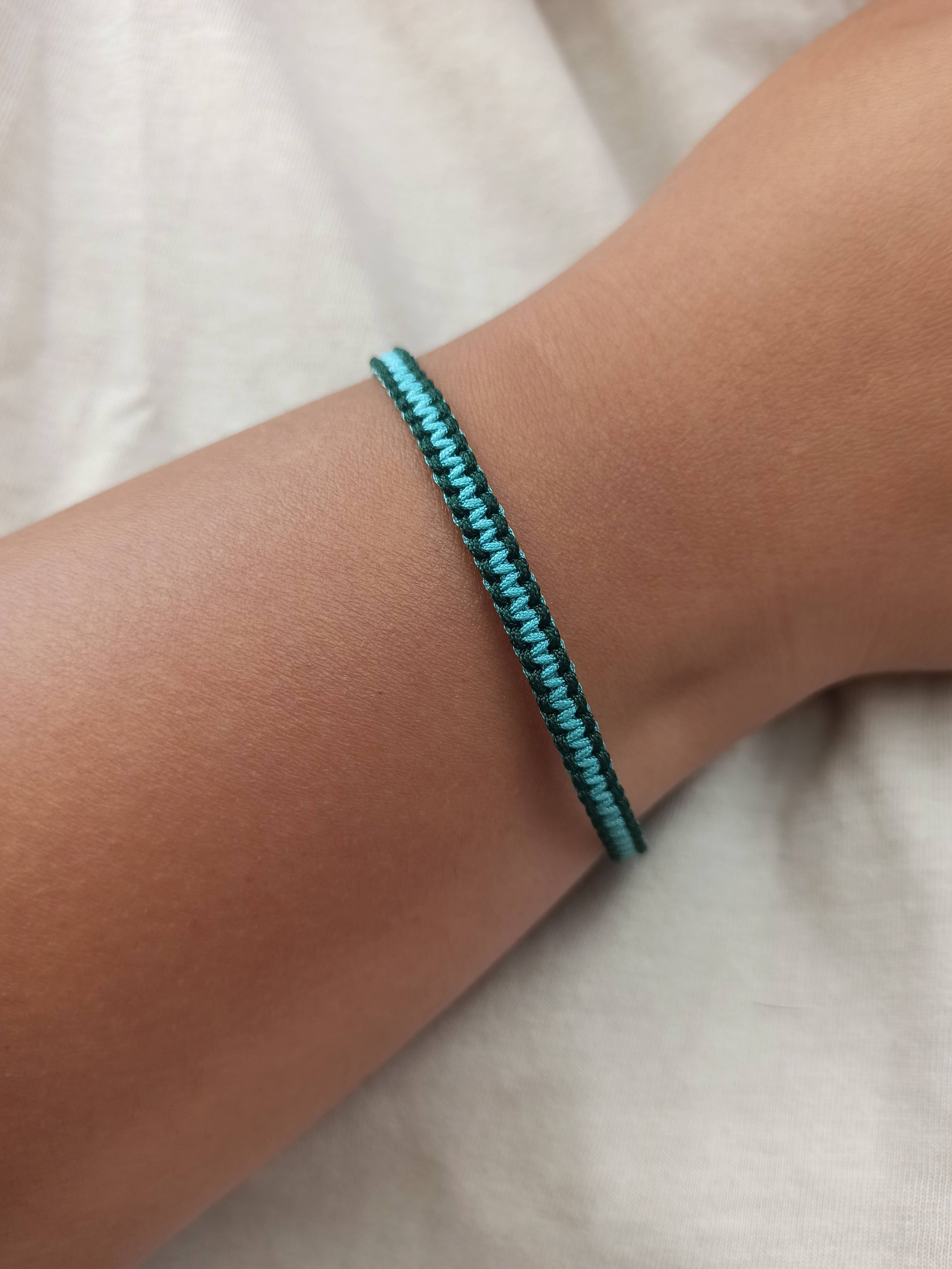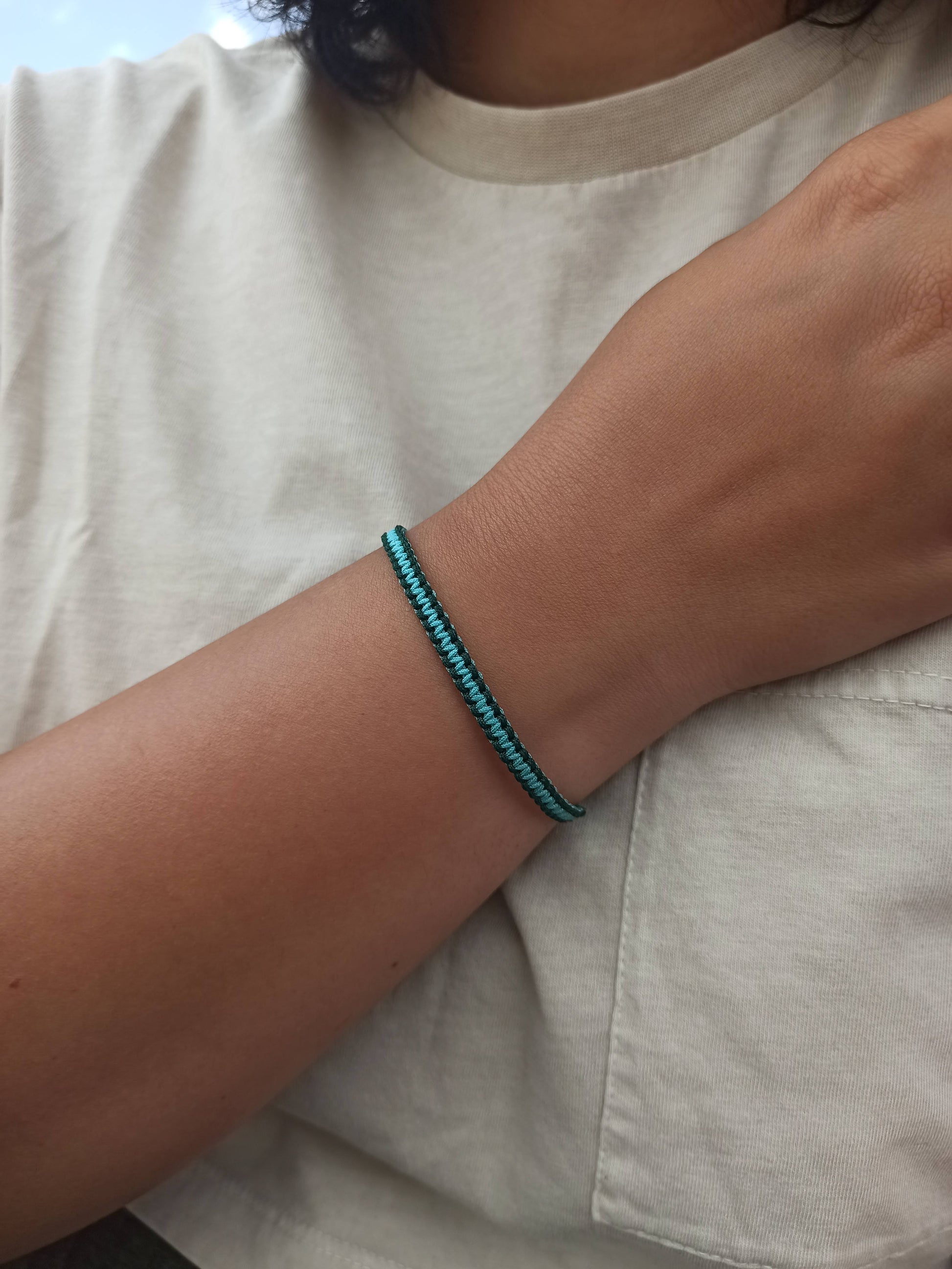 Turkuaz ve yeşil ipli makrome bileklik