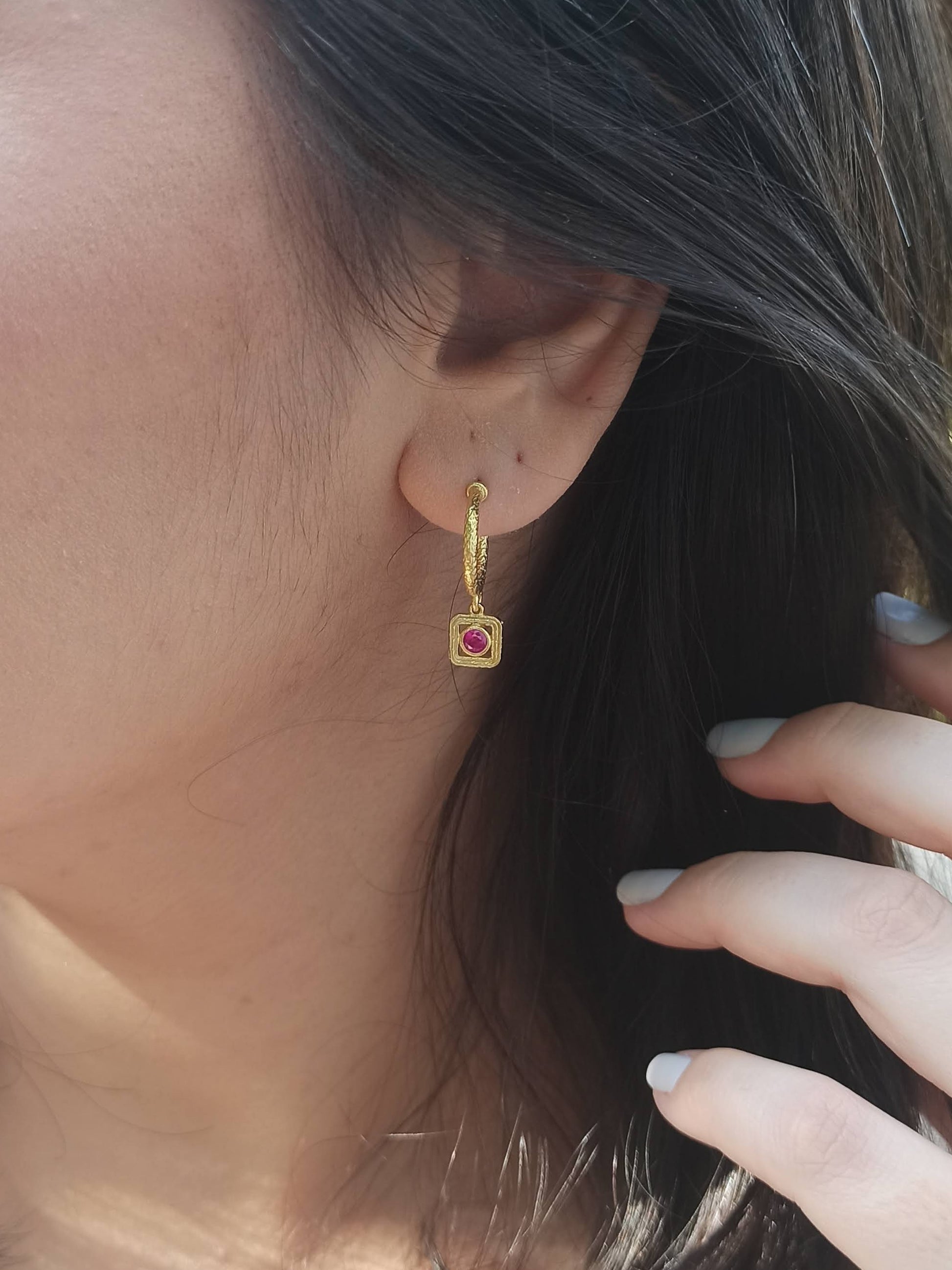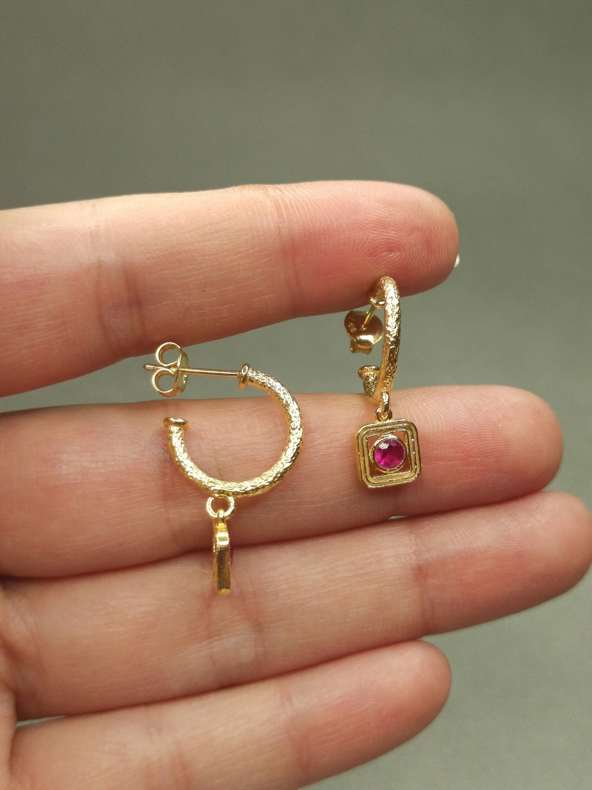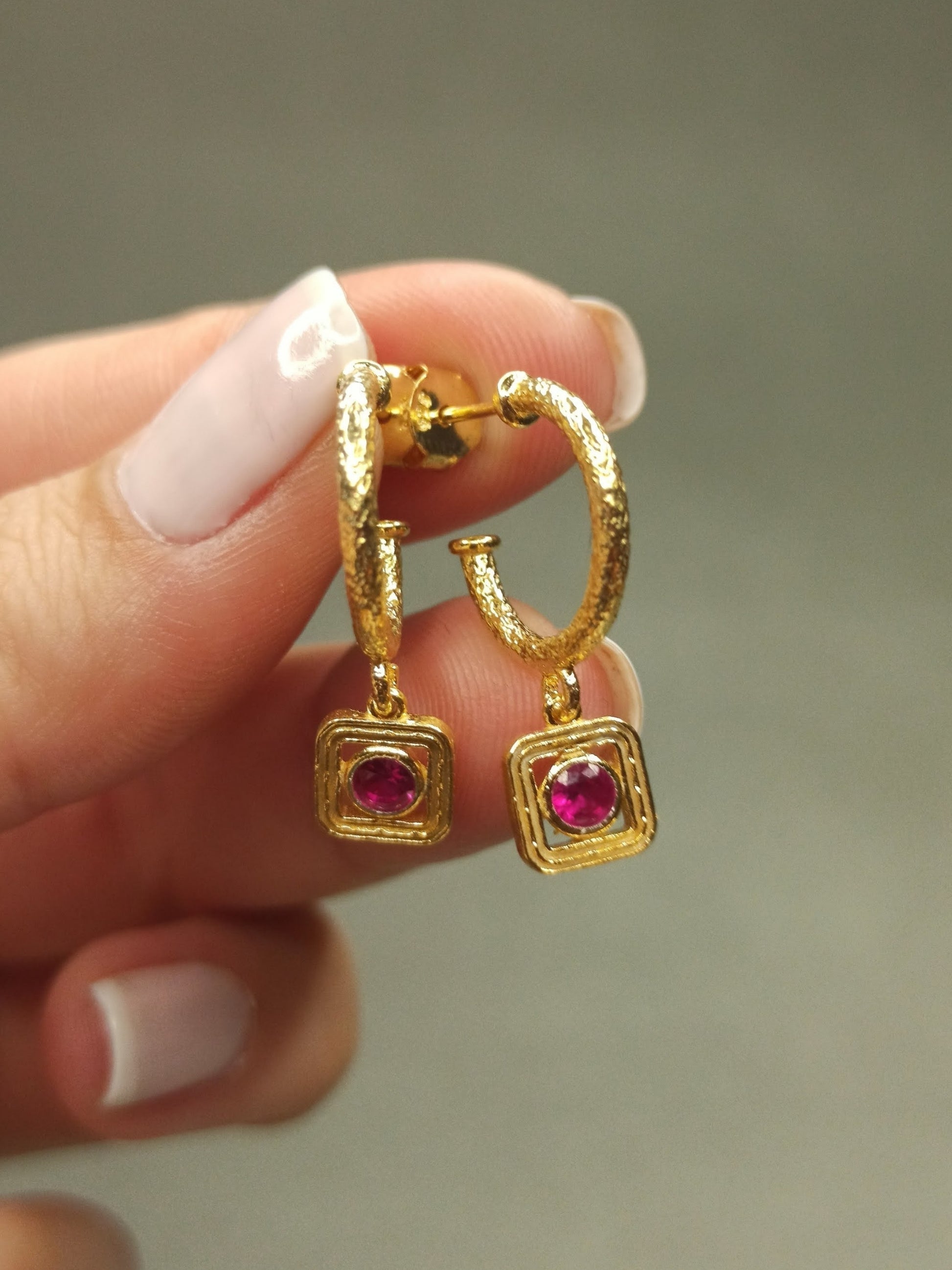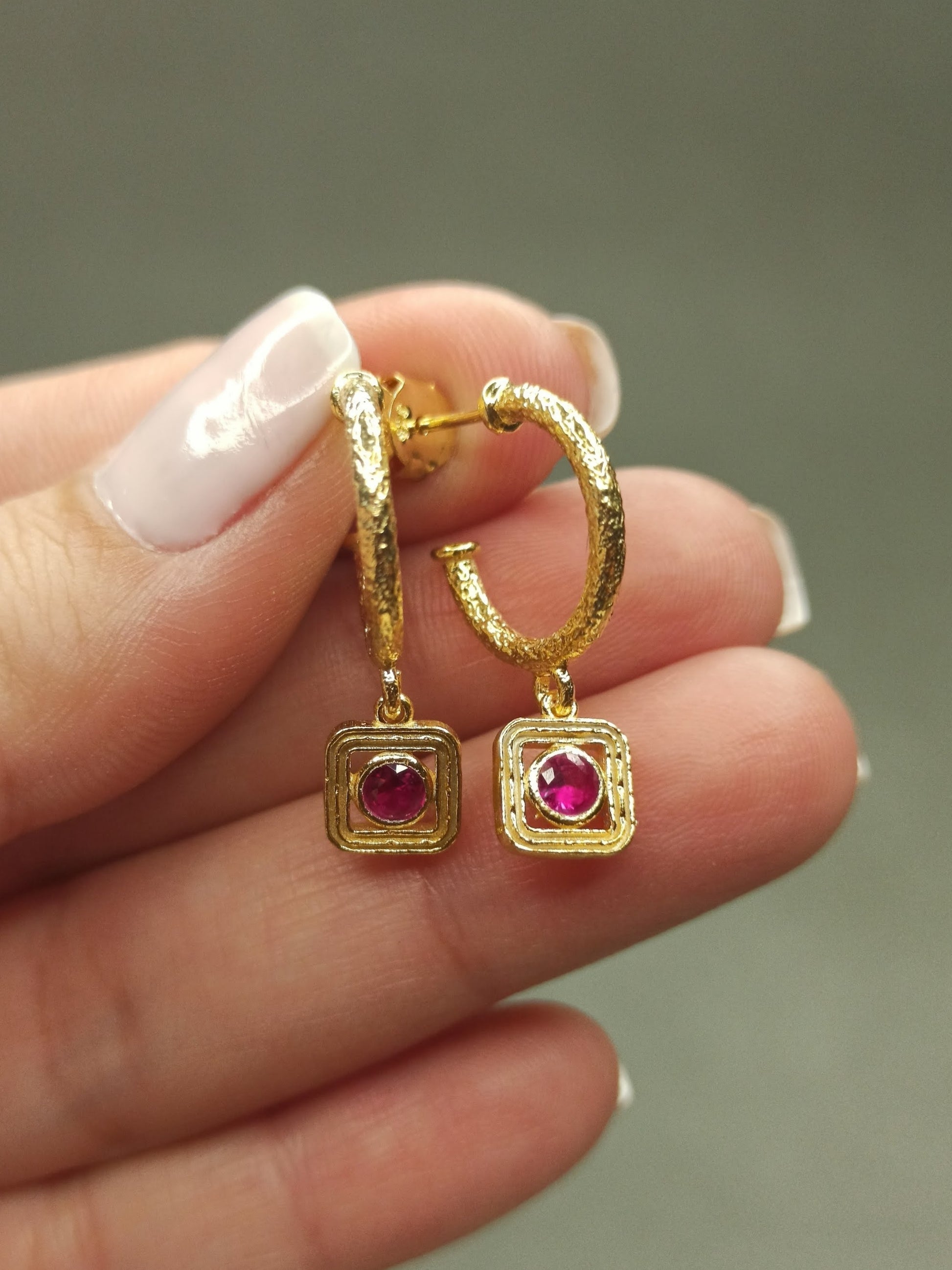 Yuvarlak KırmızıTaşlı Sallantılı Halka Küpe | BHCL Co.
