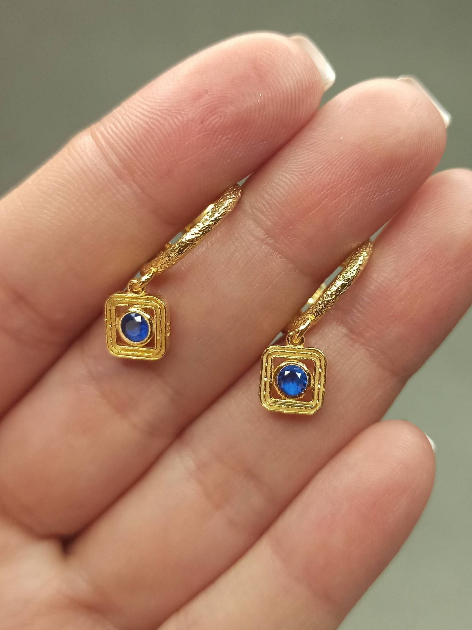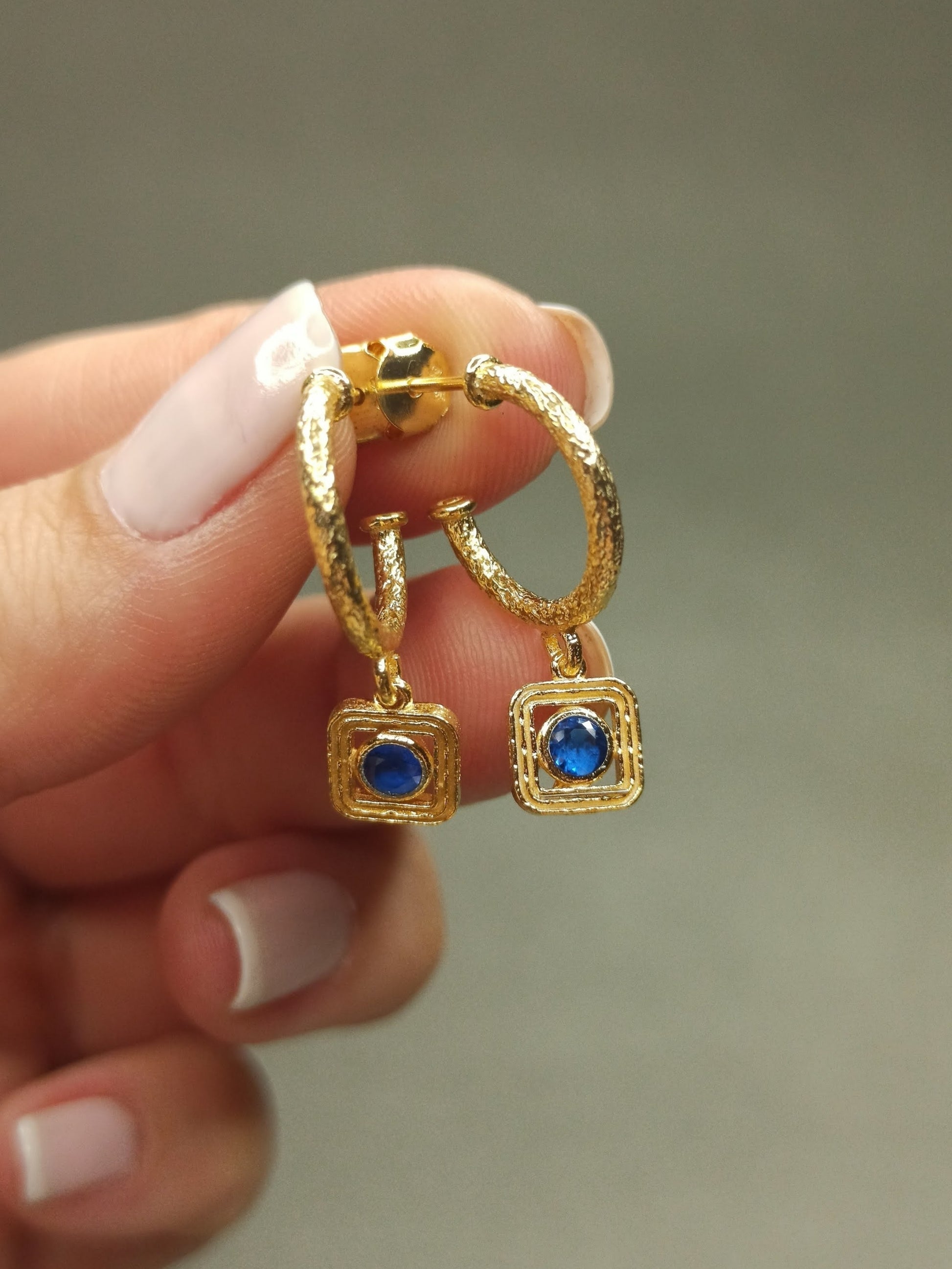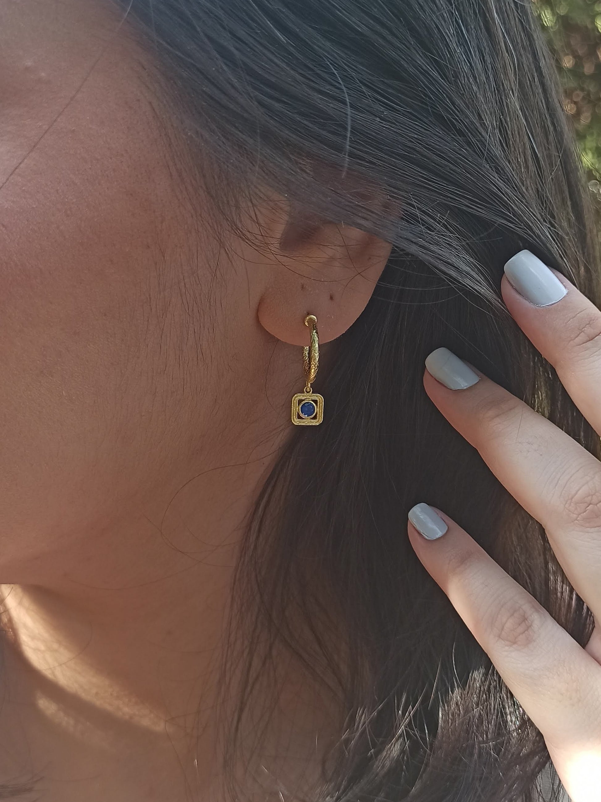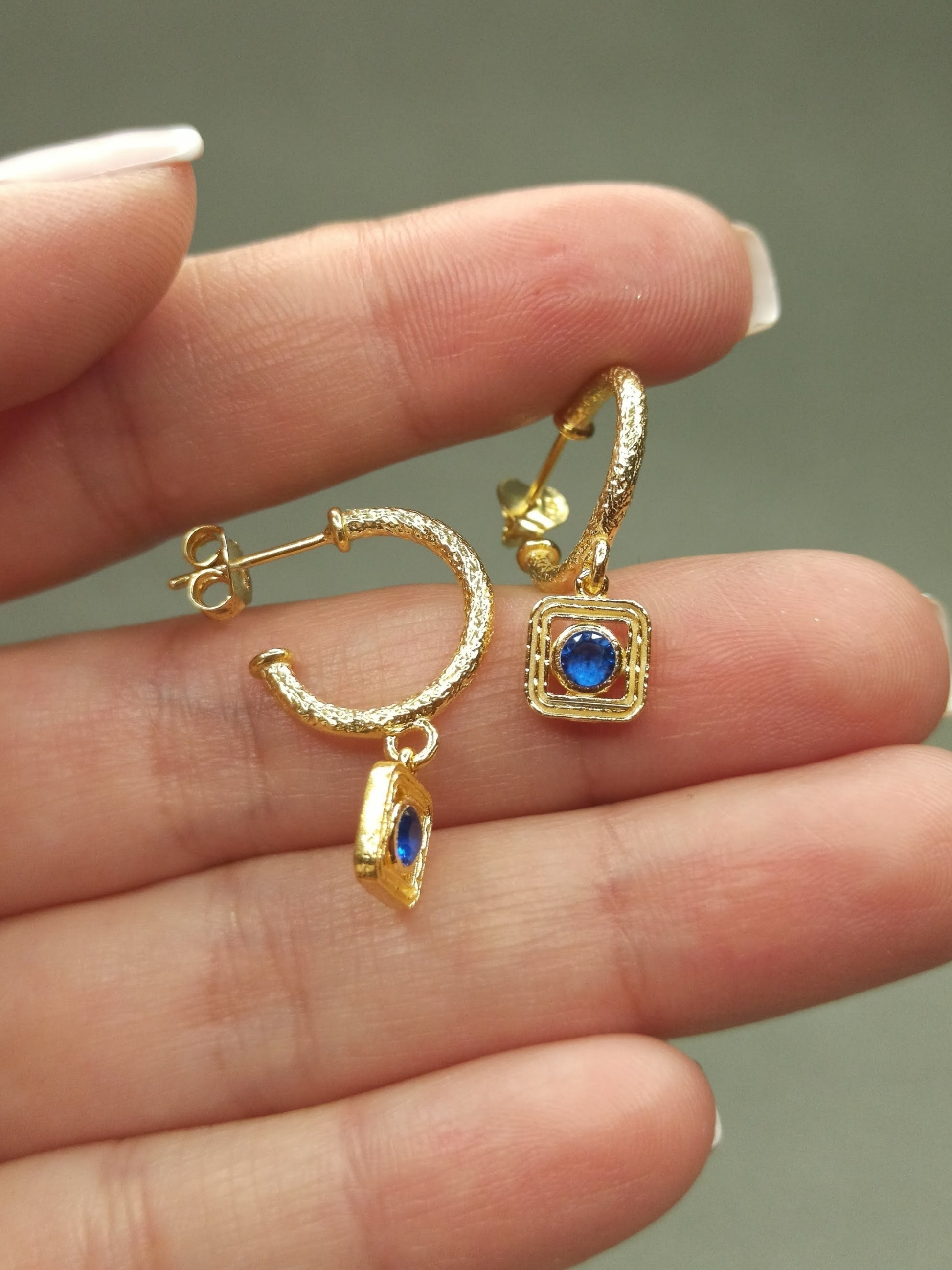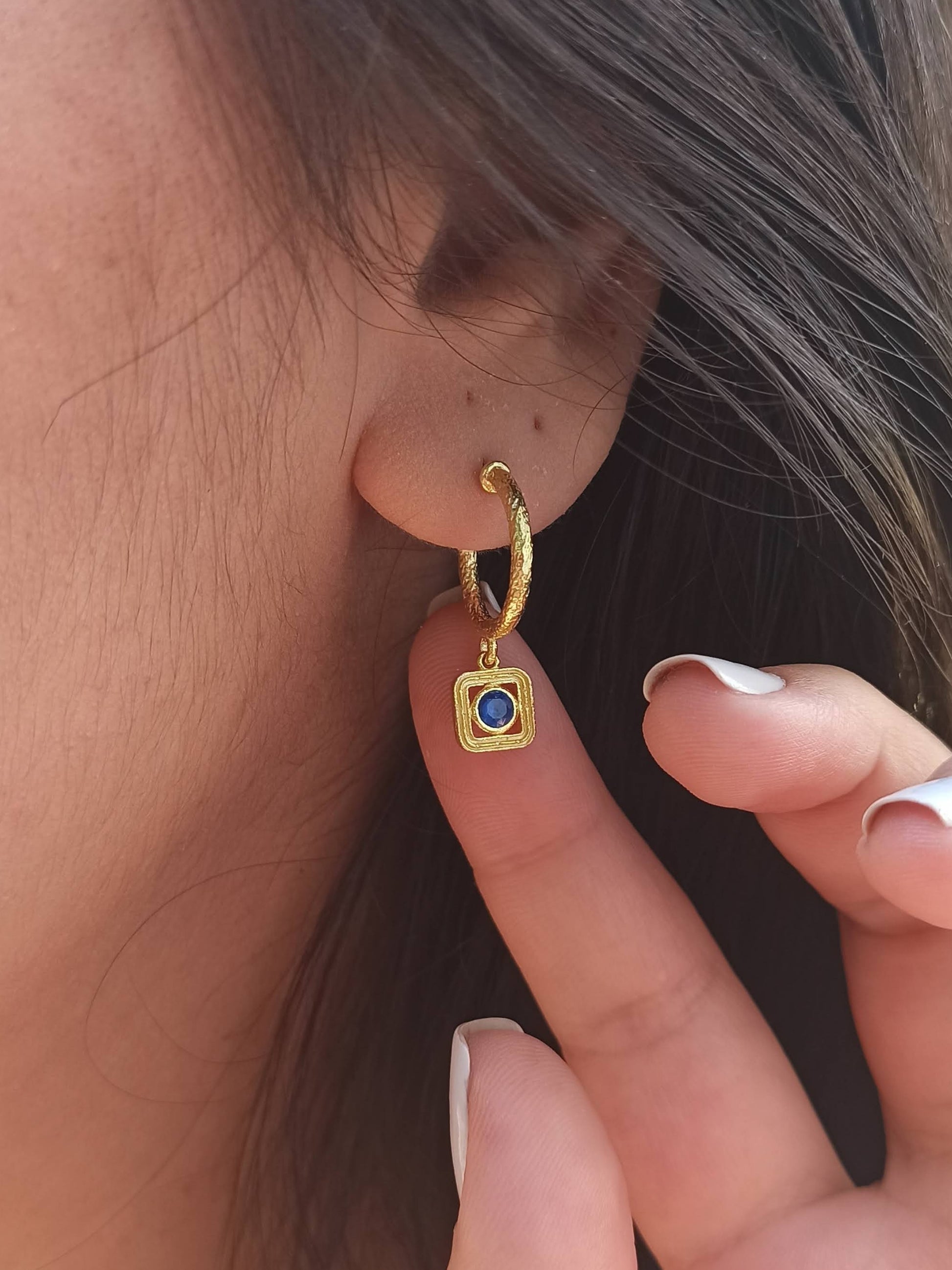 Yuvarlak Lacivert Taşlı Sallantılı Halka Küpe | BHCL Co.